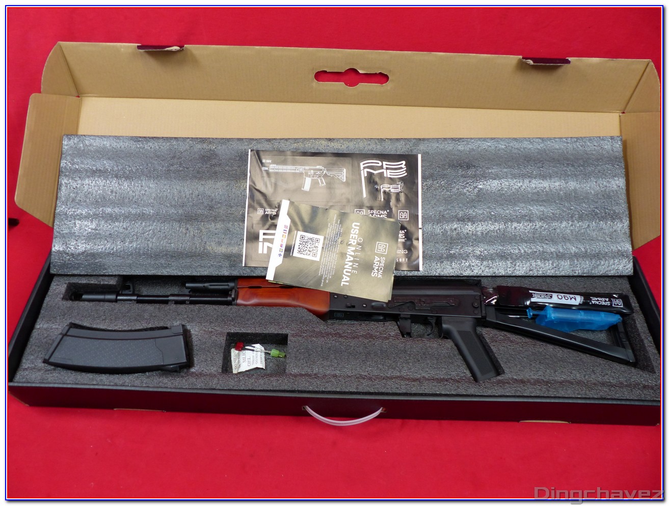 Le corps de la réplique est en acier recouvert de ce que Specna appelle un « nano-coating », un revêtement noir prétendument résistant aux chocs et aux griffures.