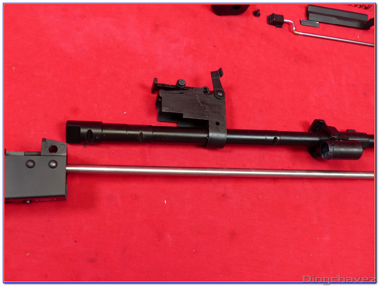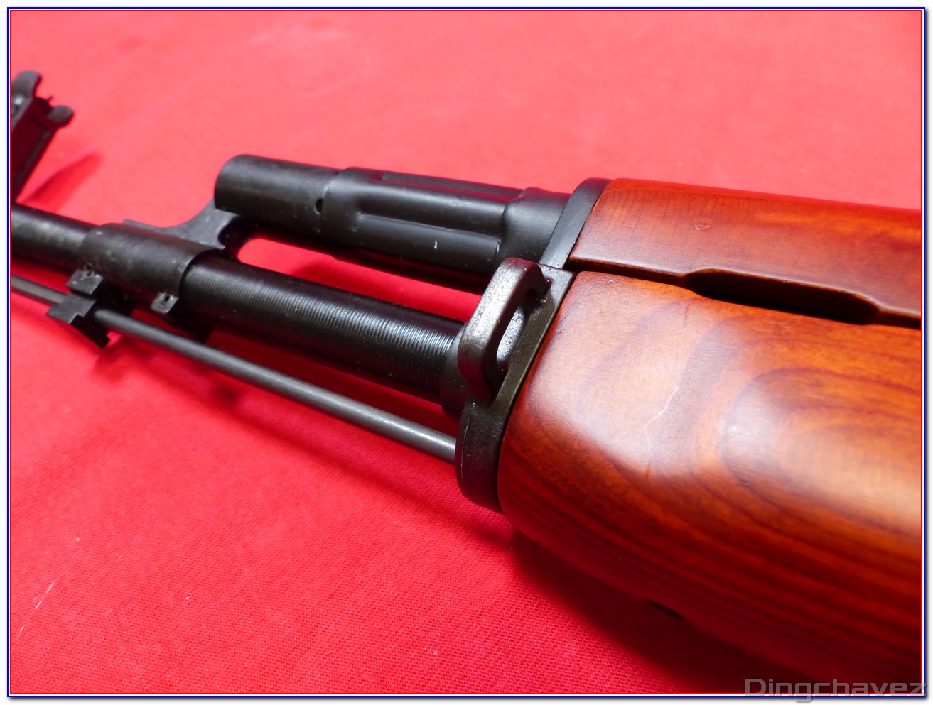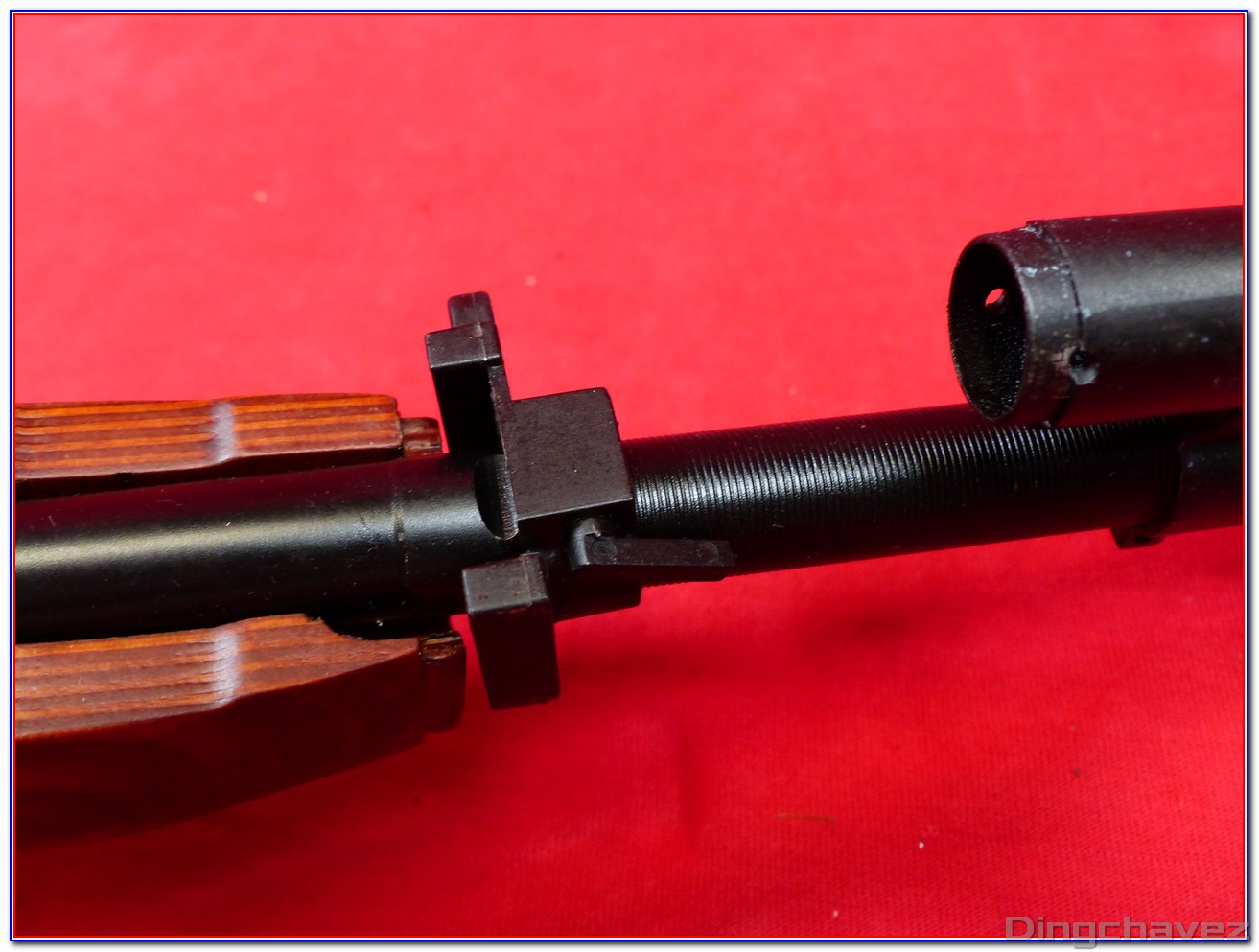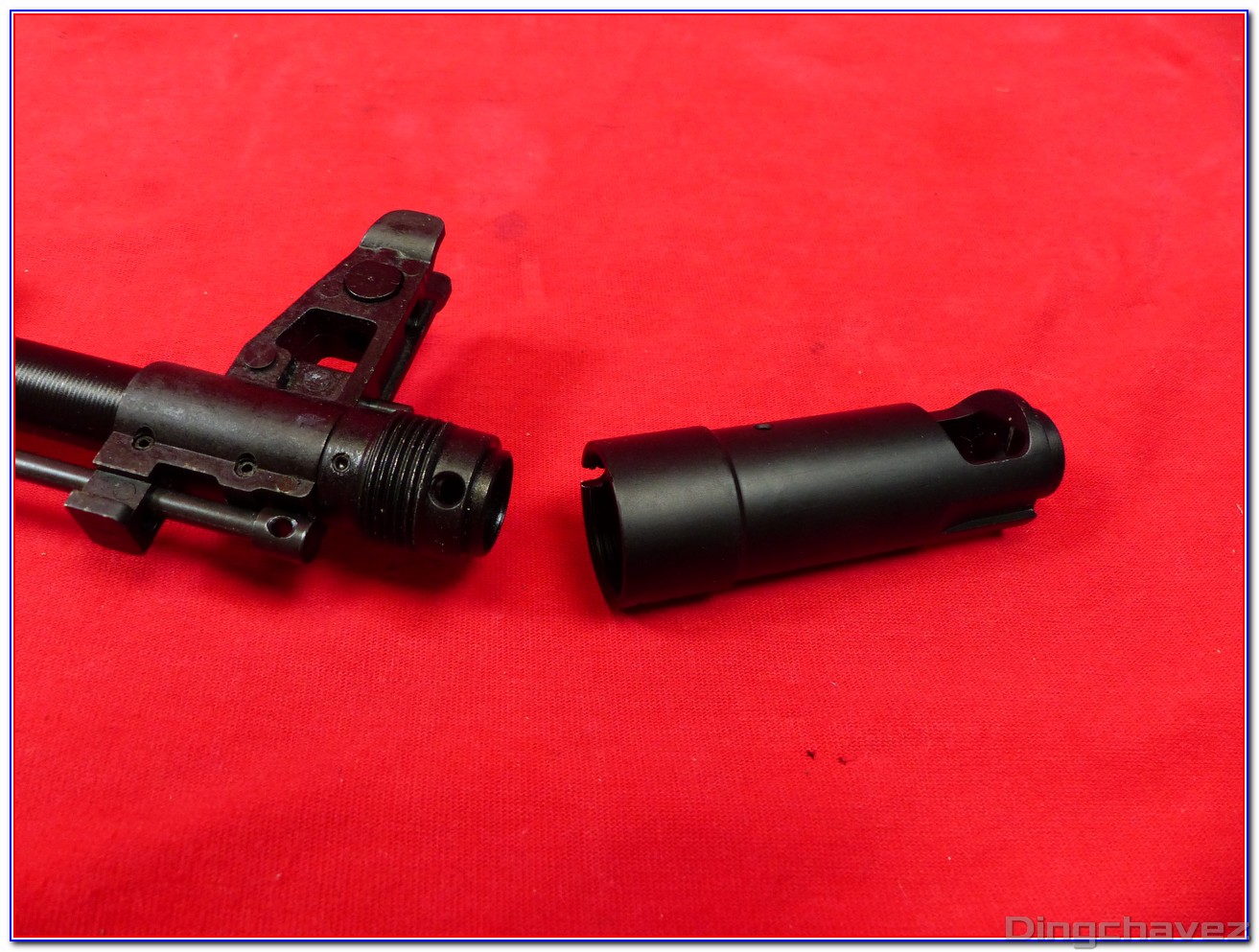 Le canon externe est en acier. Par contre, le bloc d’emprunt des gaz et le guidon sont en alliage.