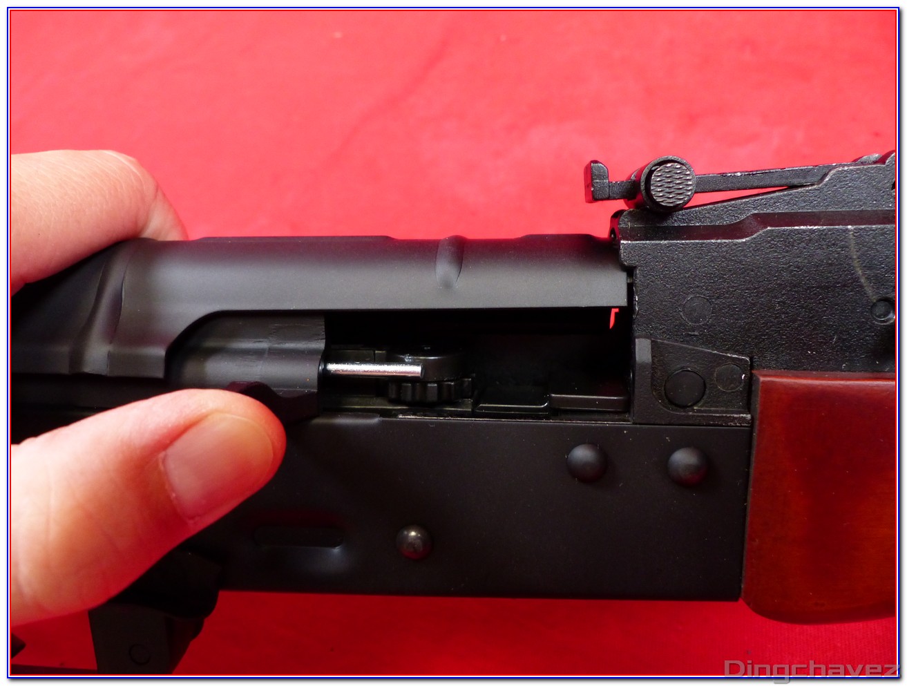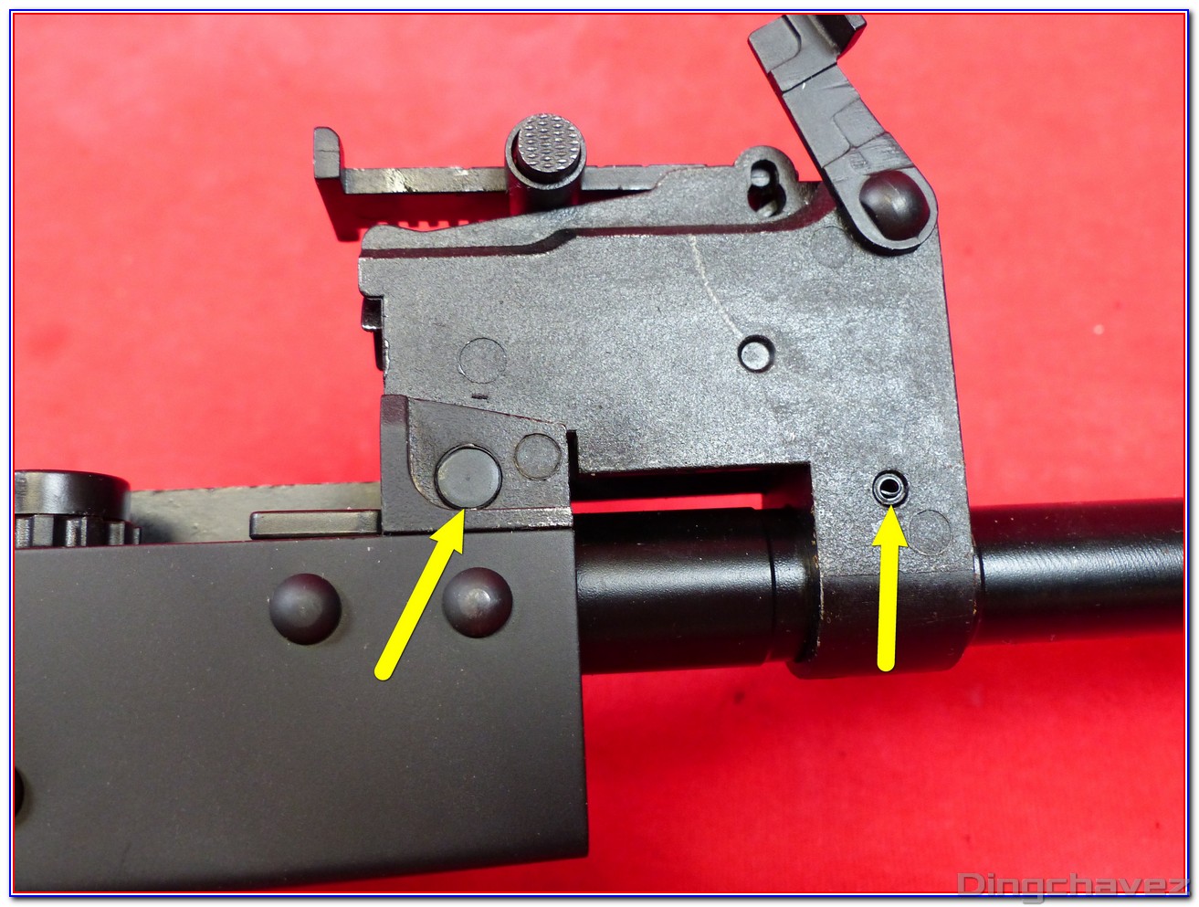 Commençons par ôter le système de renvoi du sélecteur de tir et la pièce de sûreté.