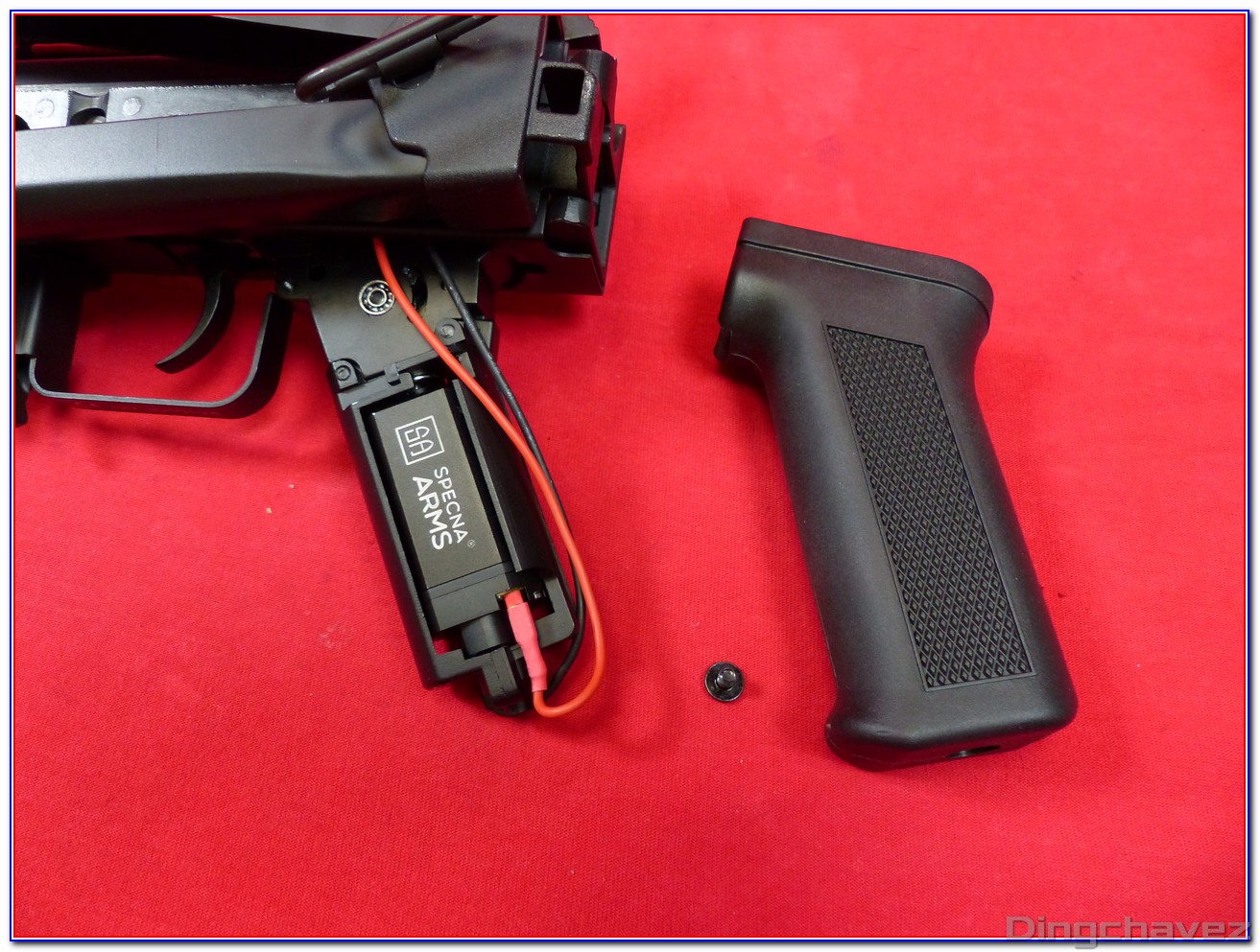 Un logo Specna est gravé sous le corps, juste derrière le garde-main.