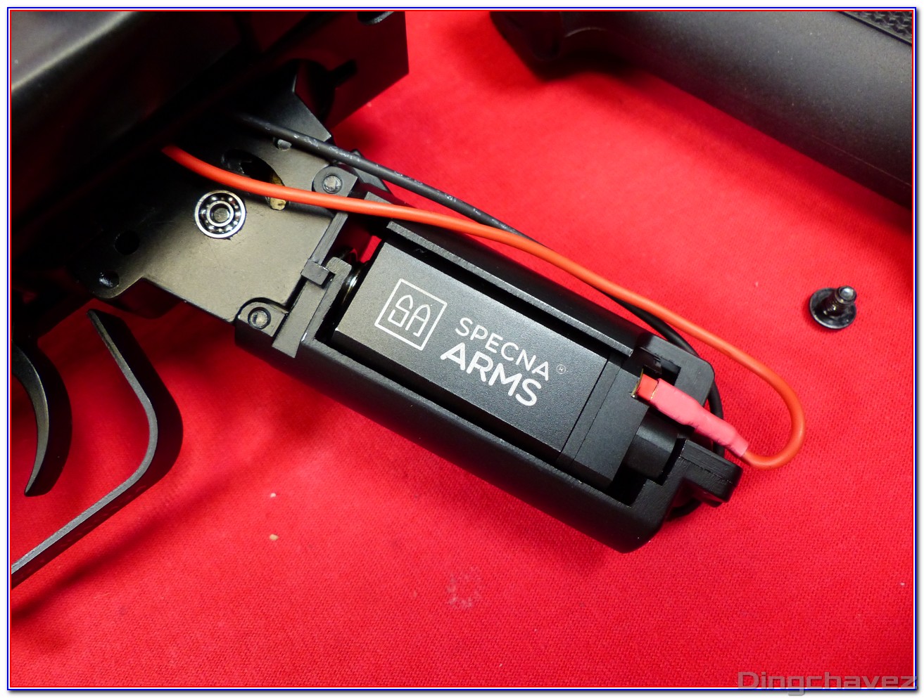 Specna a travaillé avec son assembleur pour dégager de l’espace à l’arrière de la réplique afin que l’on puisse sortir le guide de ressort sans avoir à ôter la gearbox du corps.