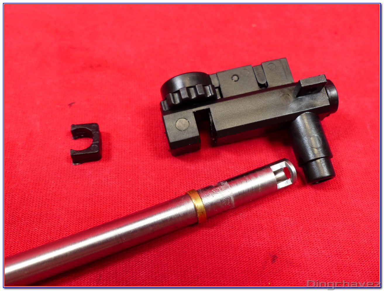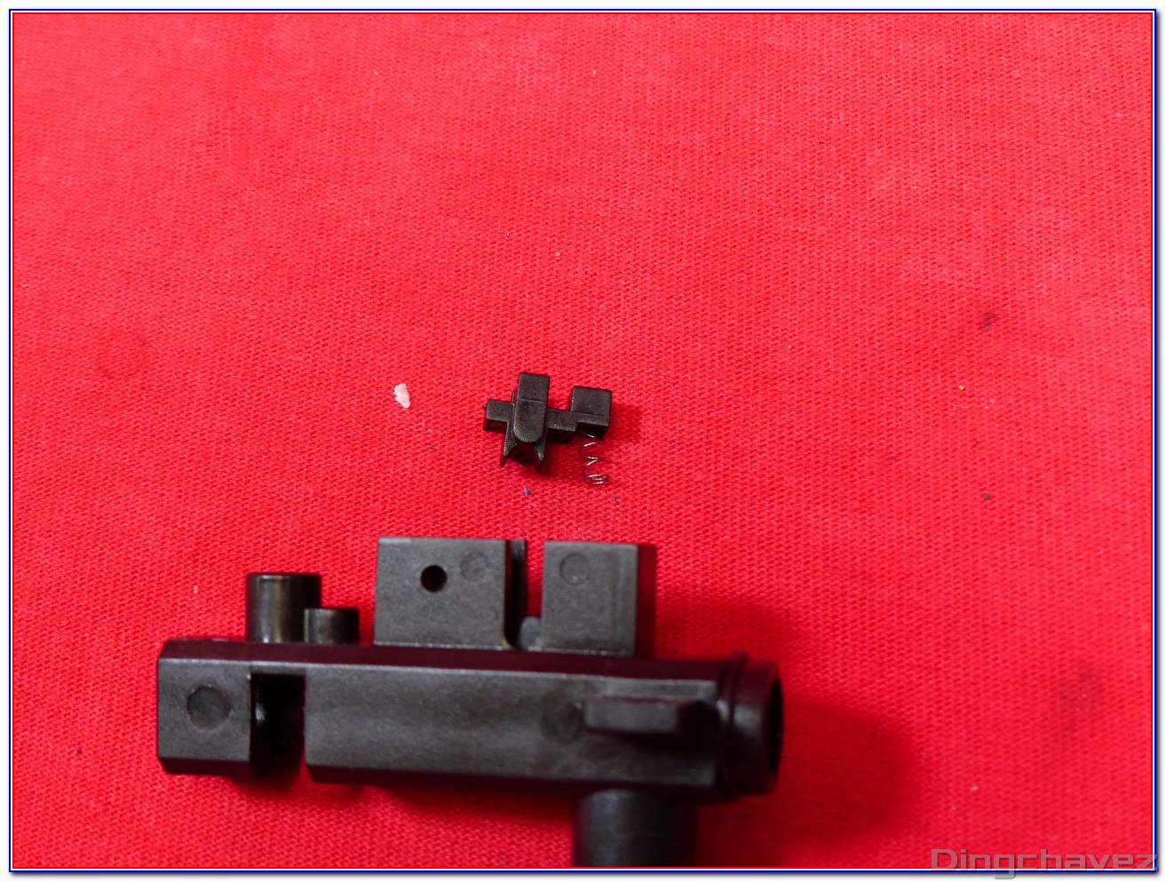 Cette pièce est censée optimiser l’ouverture et la fermeture du nozzle afin de ne pas avoir de misfeed en cas de cadence forte. Nous verrons plus bas que l’objectif n’est pas rempli sur cet AK malgré la bonne marge entre fermeture du nozzle et relâchement du piston…