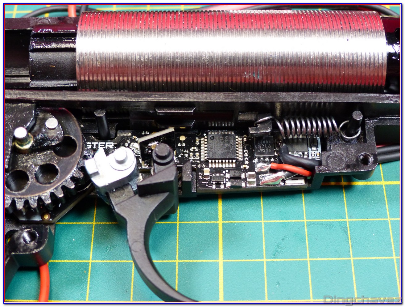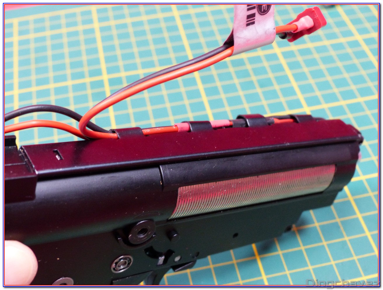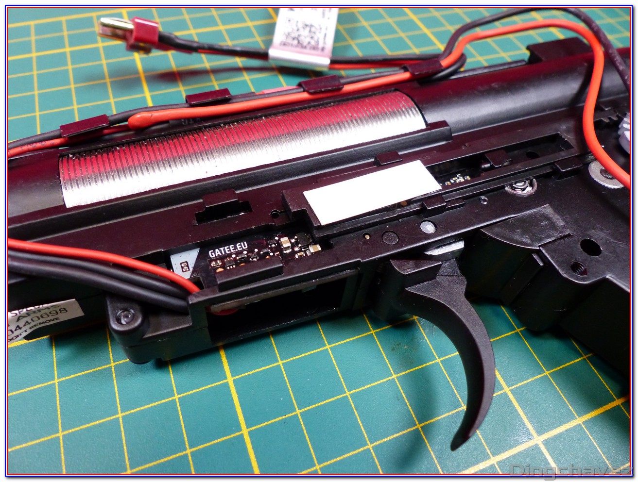 La réplique n’est donc pas optimisée pour des ressorts souples et c’est bien dommage. L’utilisation d’une batterie LiPo 7.4V a fait disparaitre le problème chez moi mais la cadence de tir se réduit en conséquence.