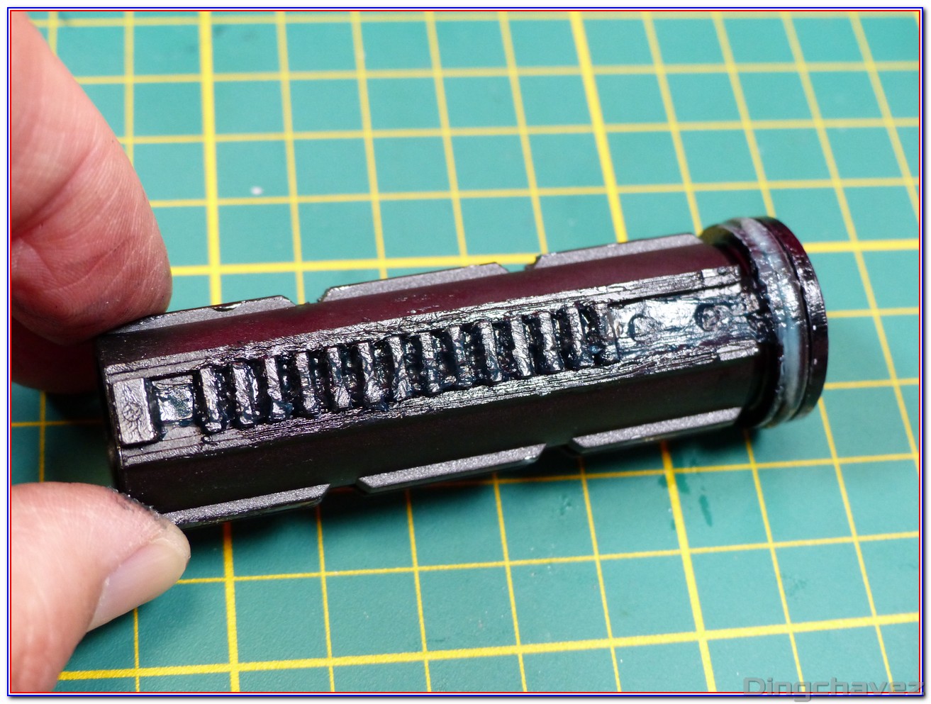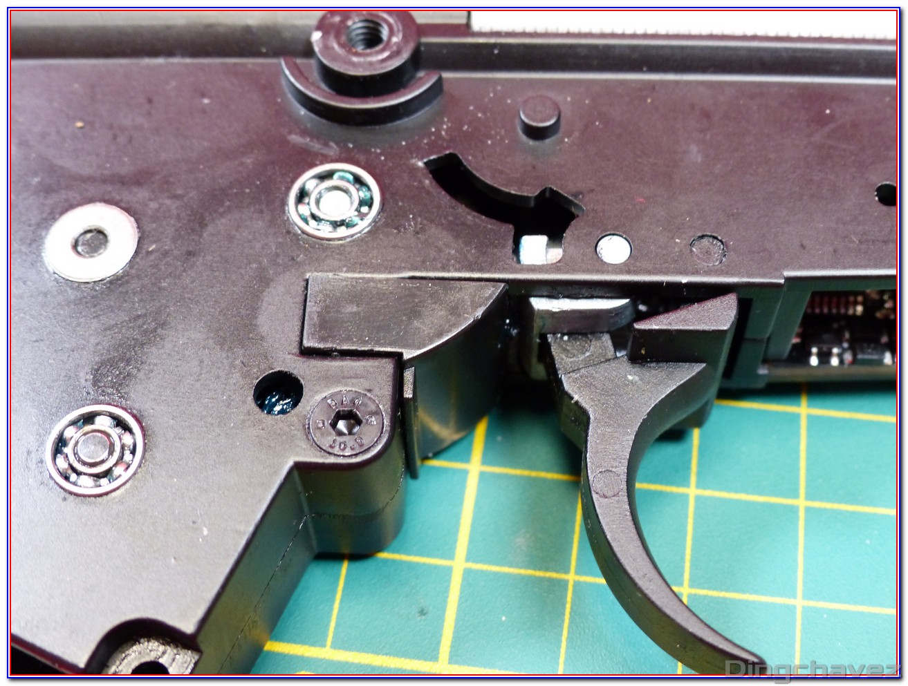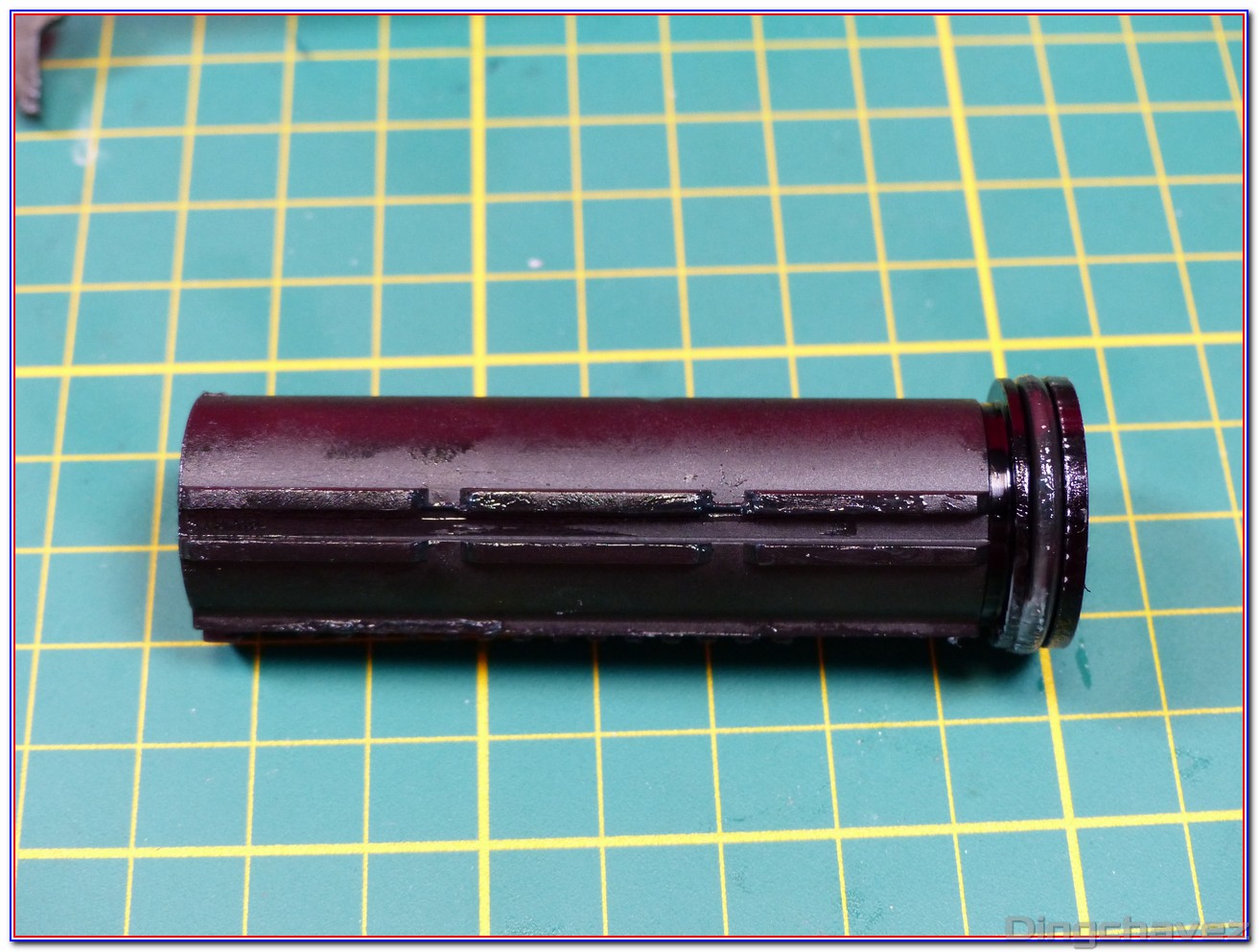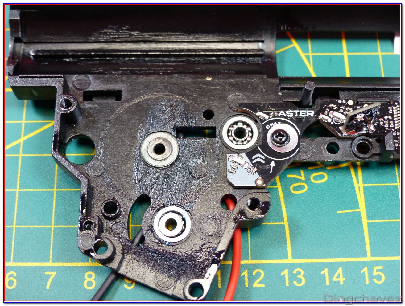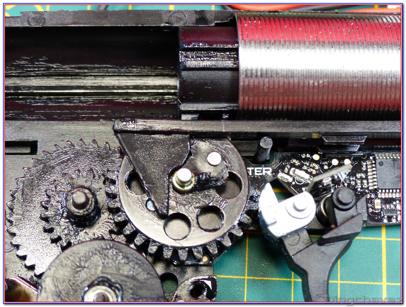 Et voilà ! Même de loin, on constate que la lubrification est faite trèèèèèèès rapidement au pinceau. Tchic, tchac, à l’arrache mais au moins il y a de la graisse là où il en faut (et « un peu » autour ^^).