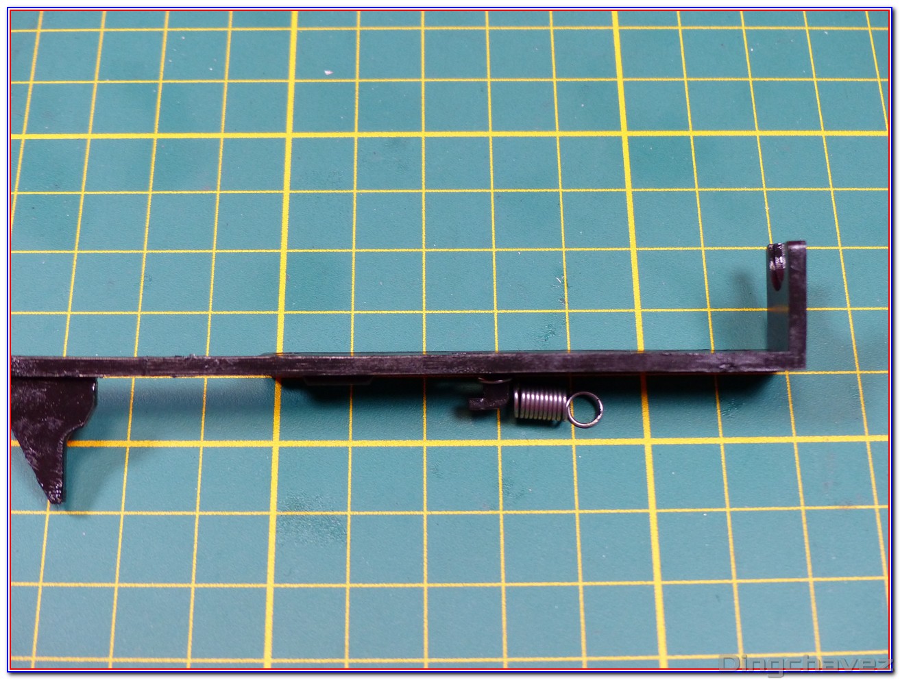 Une petite patte en acier cale le guide de ressort. Déposons-là.