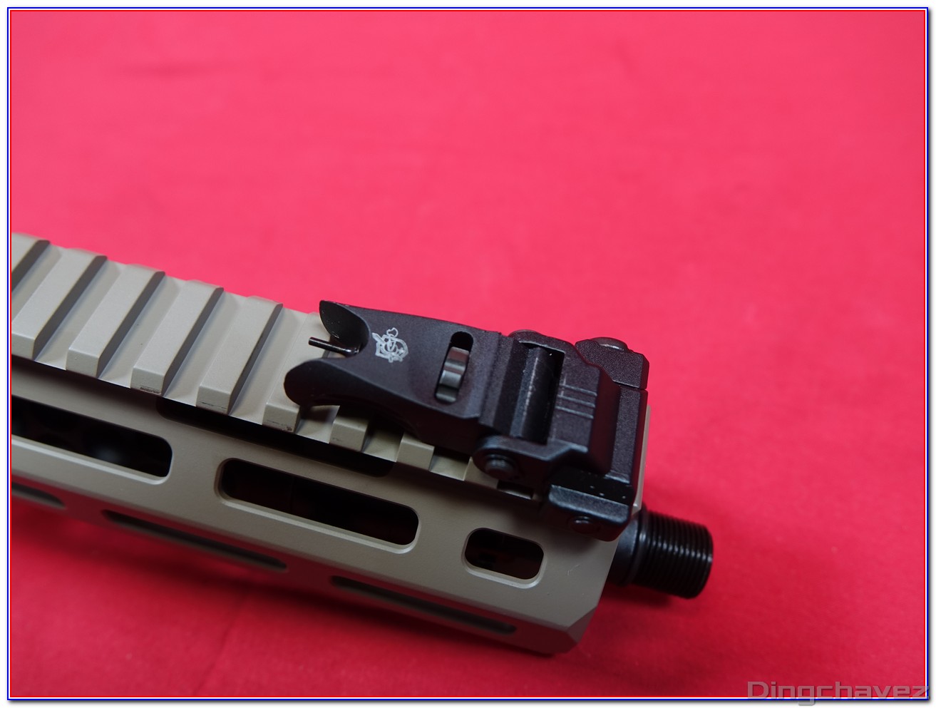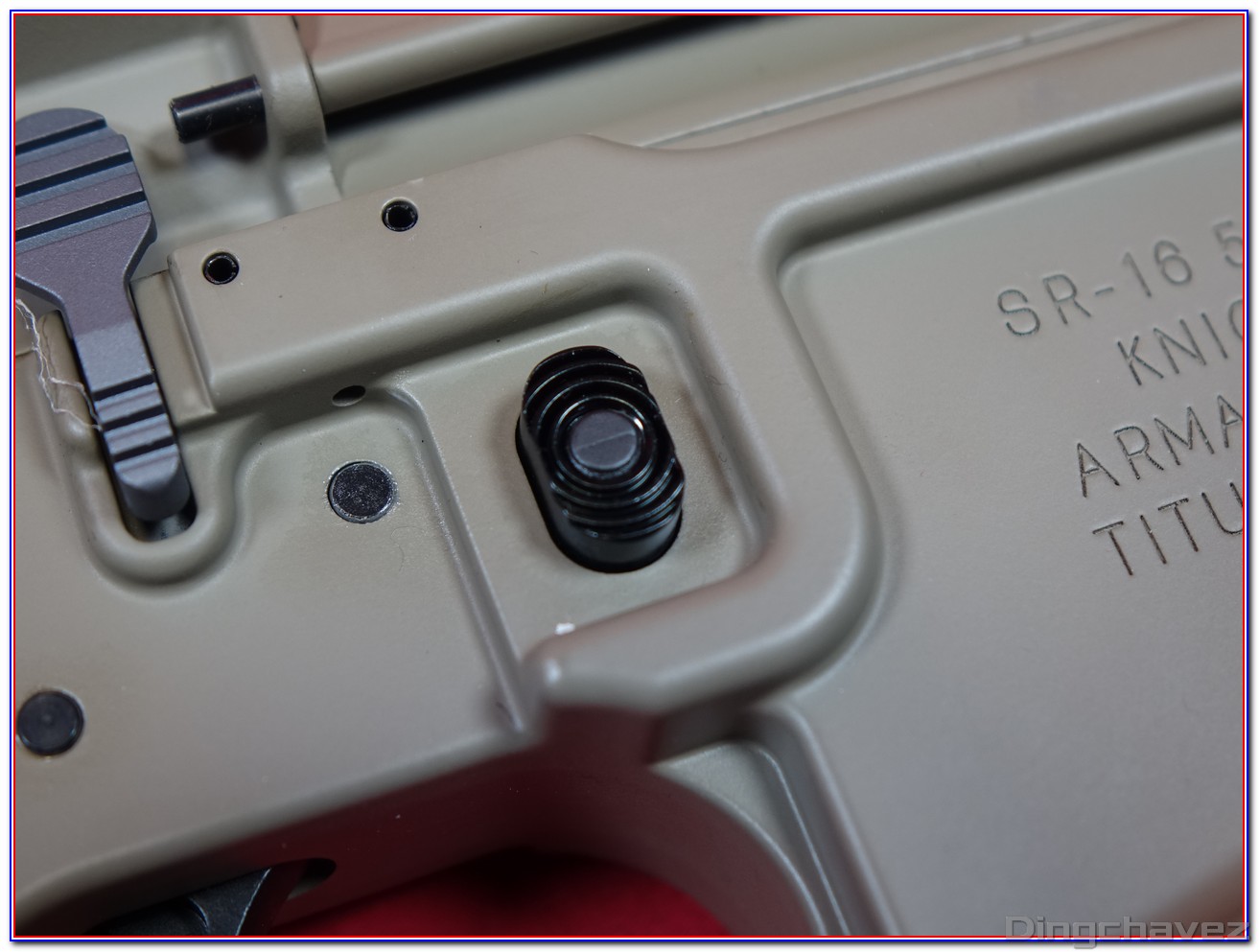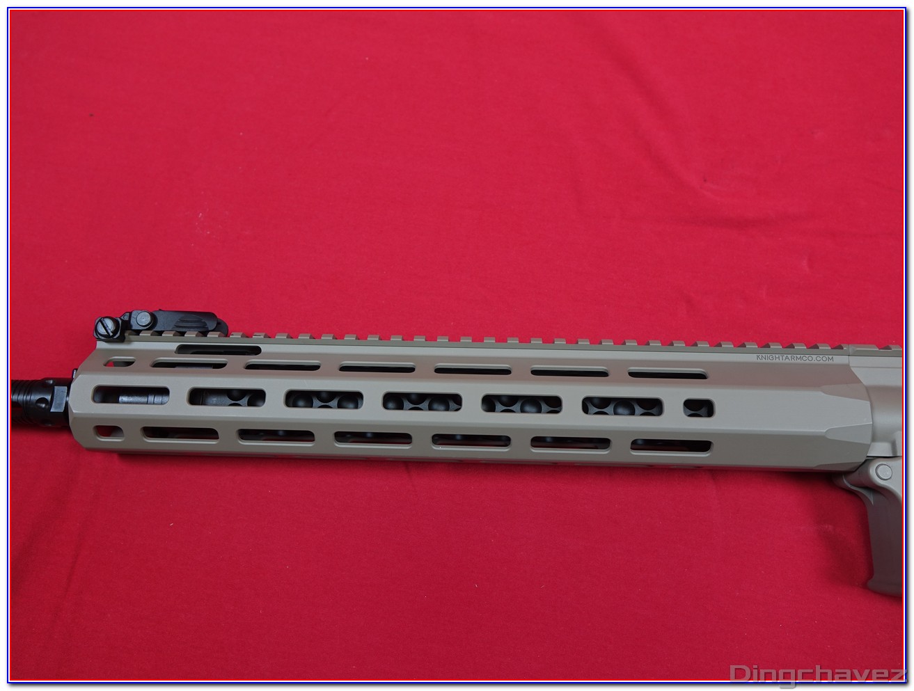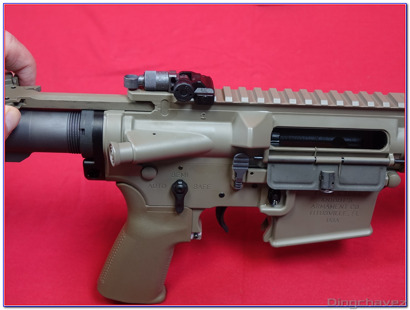 Dès la sortie de boîte on est frappé par la qualité générale de l’usinage l’homogénéité de la peinture et le soin apporté à la reproduction des marquages Knight’s Armament : autant d’éléments qui renforcent immédiatement la sensation d’avoir entre les mains un produit haut de gamme.
