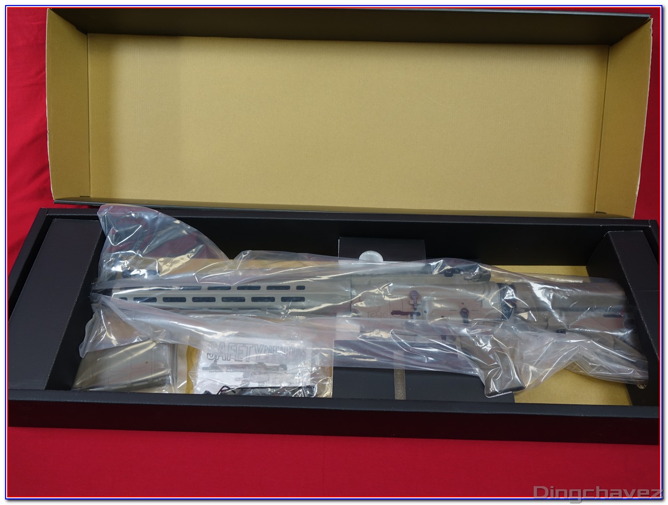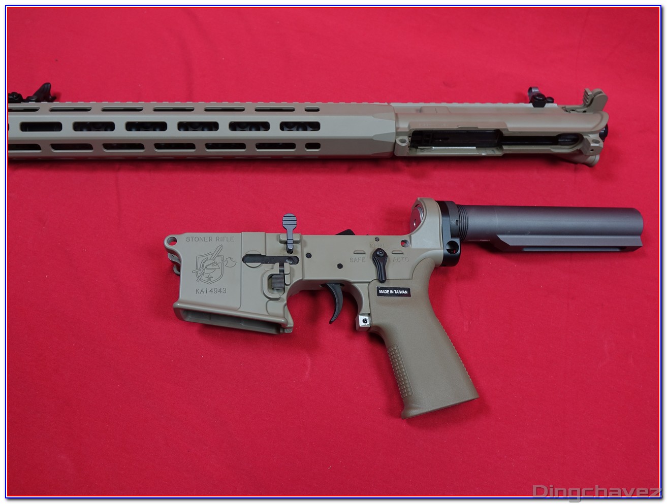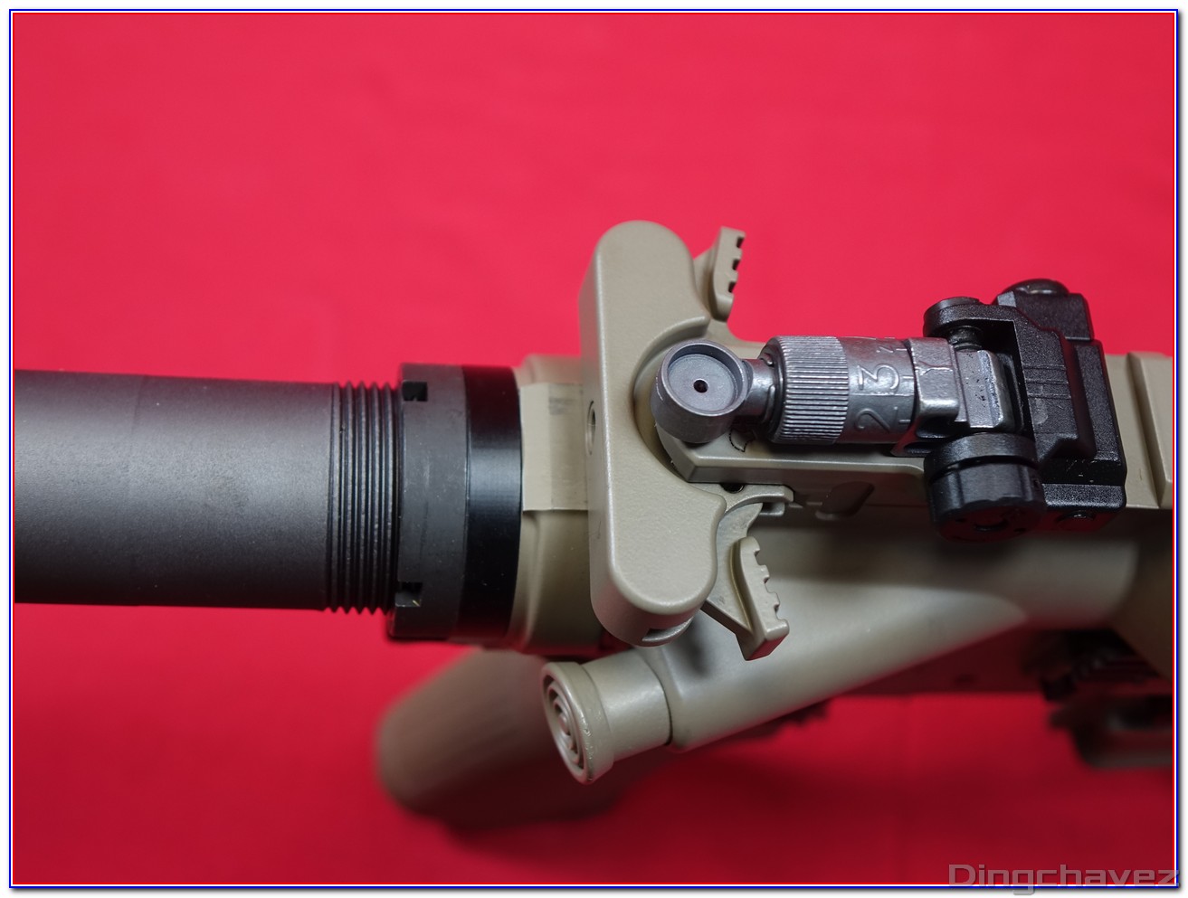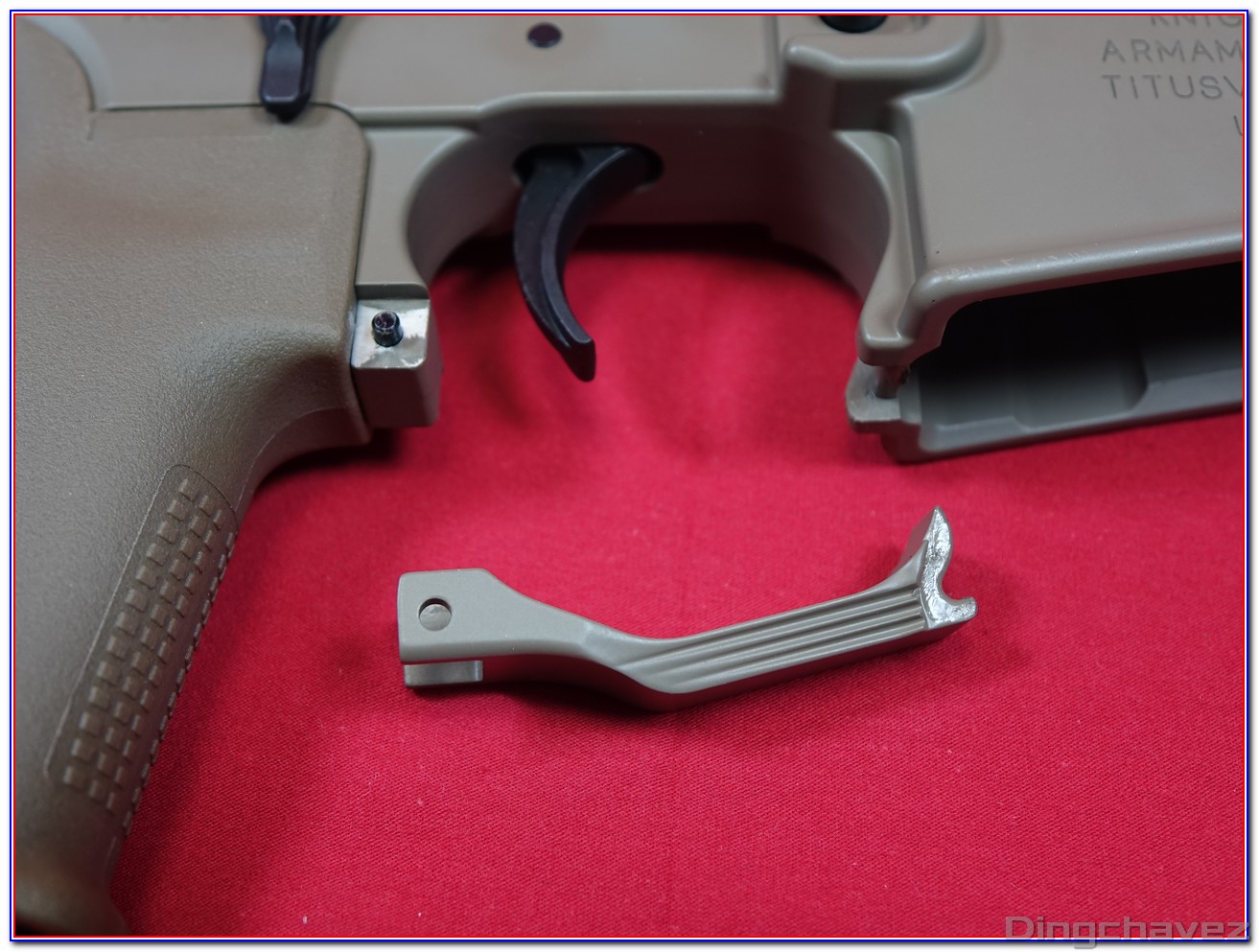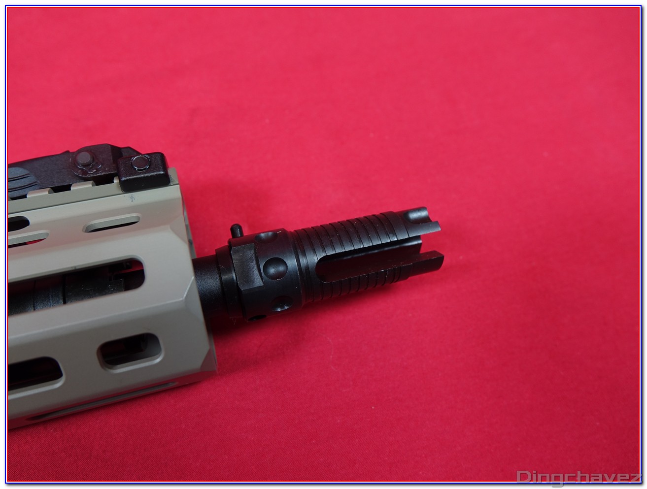 Dès la sortie de boîte on est frappé par la qualité générale de l’usinage l’homogénéité de la peinture et le soin apporté à la reproduction des marquages Knight’s Armament : autant d’éléments qui renforcent immédiatement la sensation d’avoir entre les mains un produit haut de gamme.