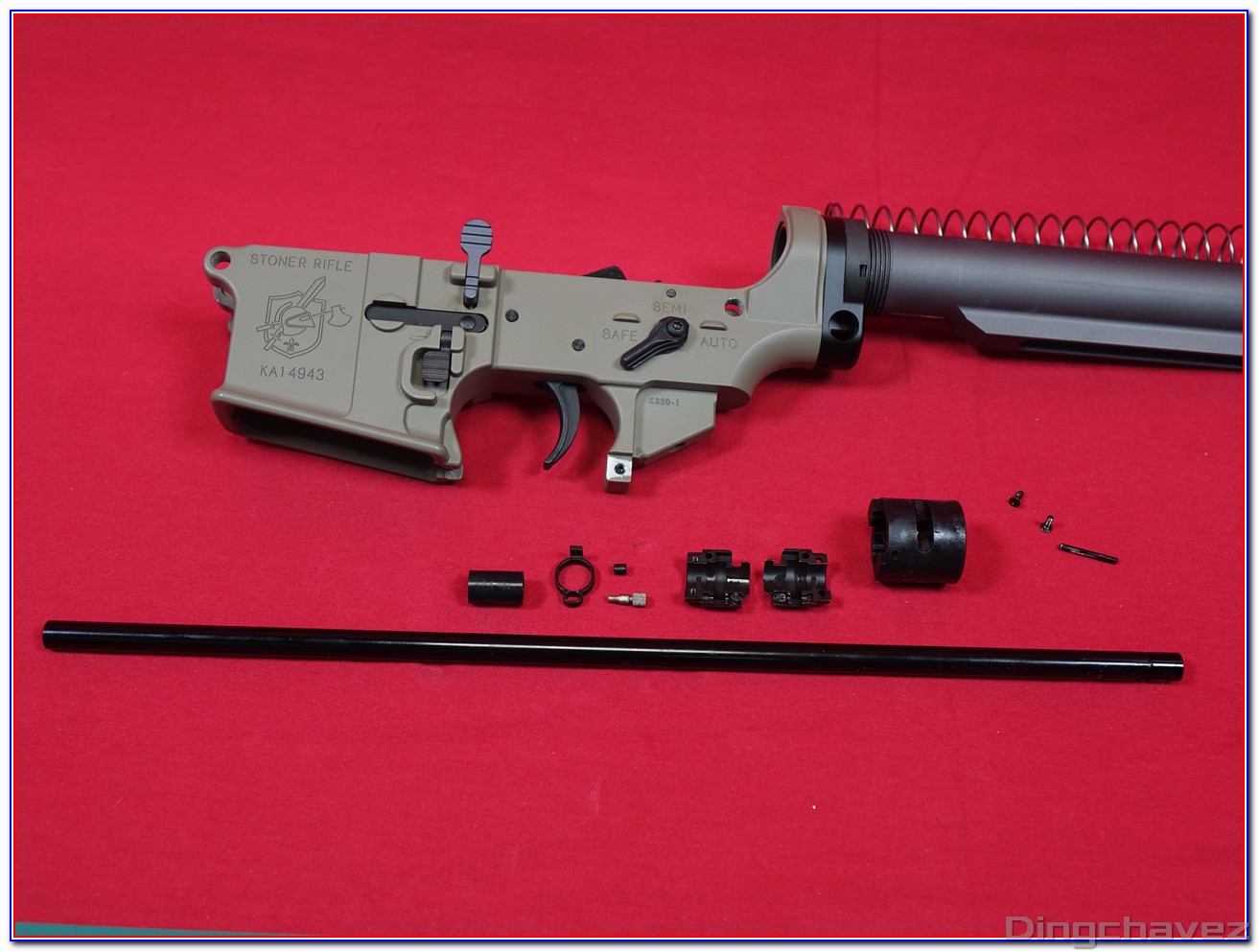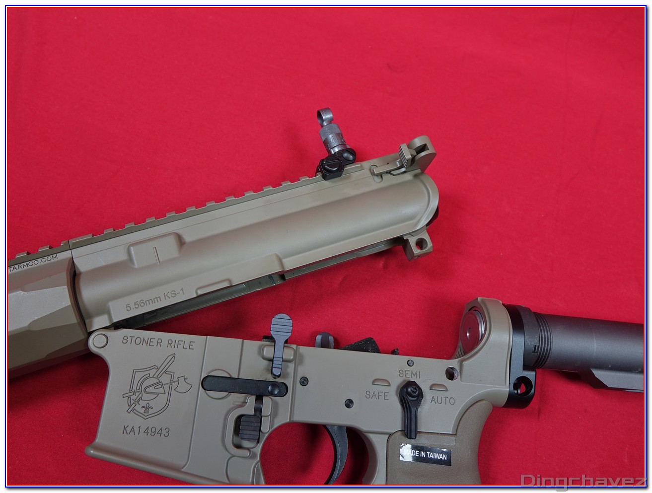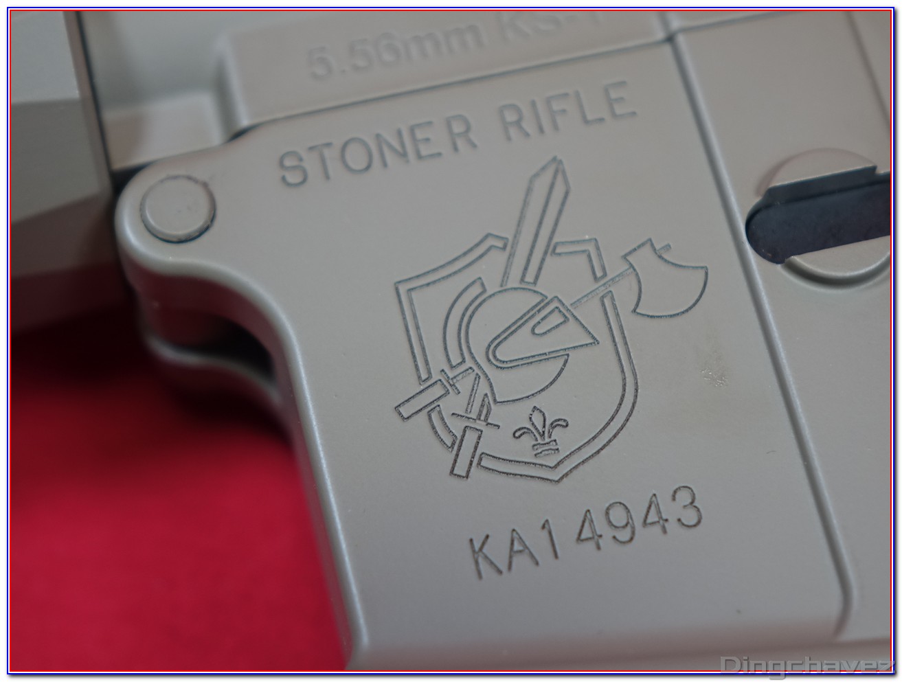 Le logo KA est gravé à l’arrière du rail Picatinny du receveur supérieur (upper receiver).