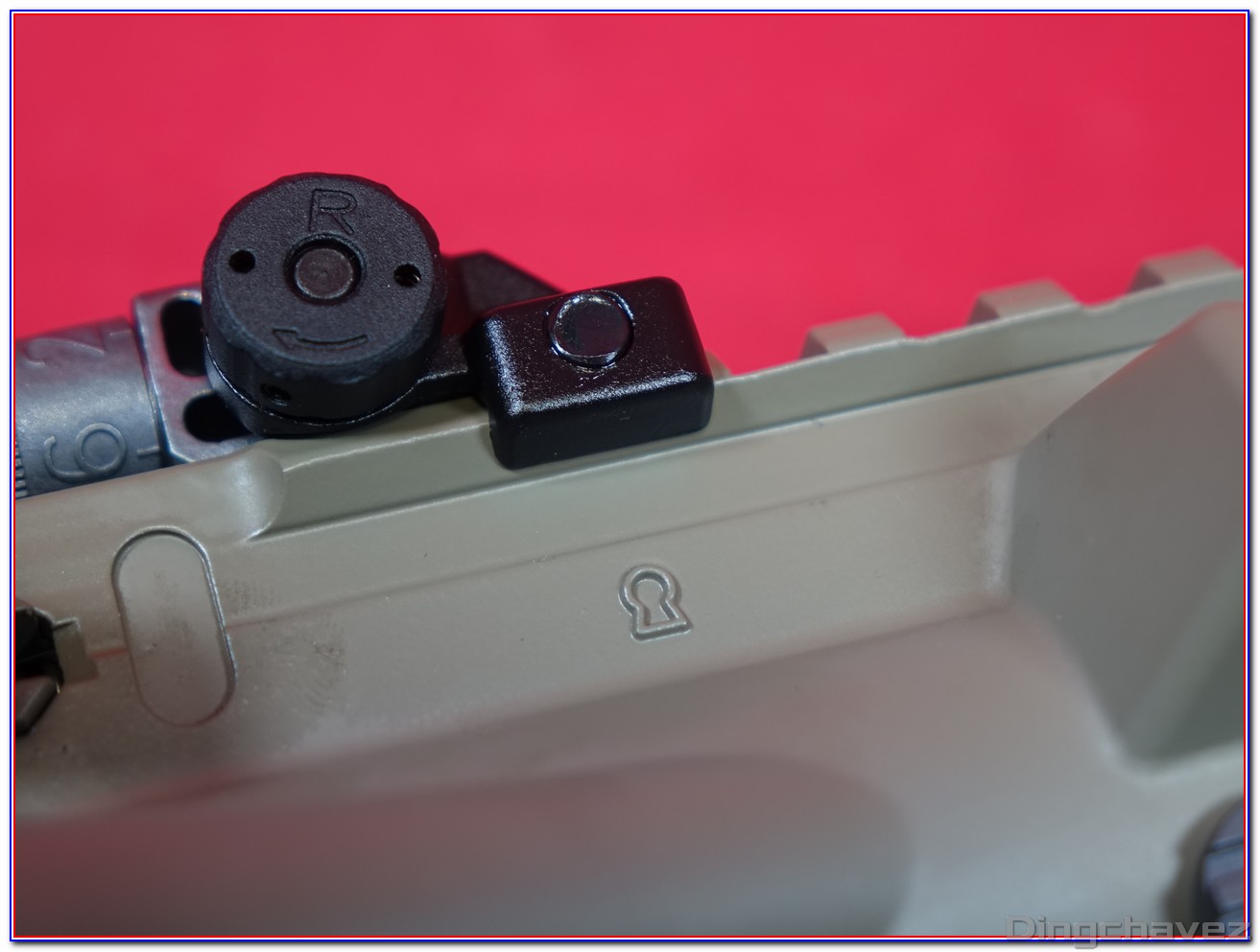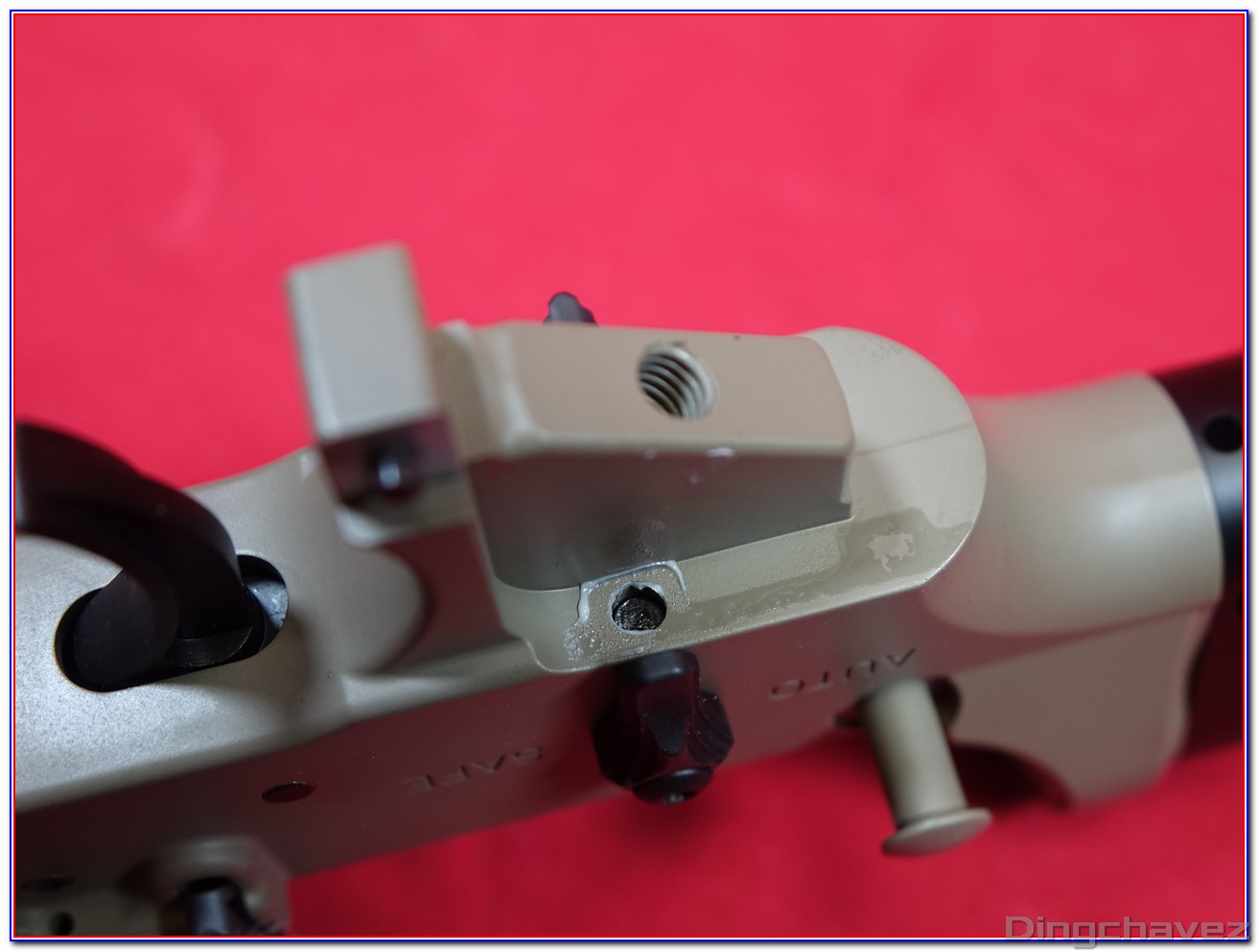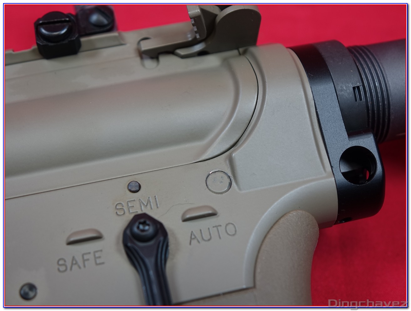 Deux évents ont été percé sur le côté, soi-disant pour augmenter l’efficacité de la réplique. Je ne saurais pas vous dire si cela change quelque chose étant donné que je ne possède pas d’autre AR-15 GBBR de la marque taïwanaise.