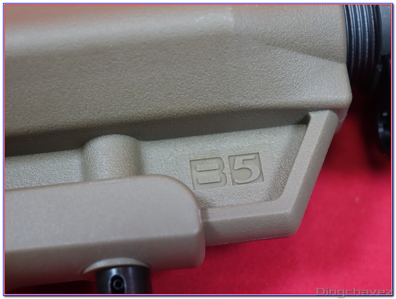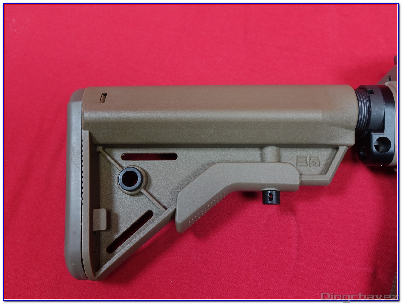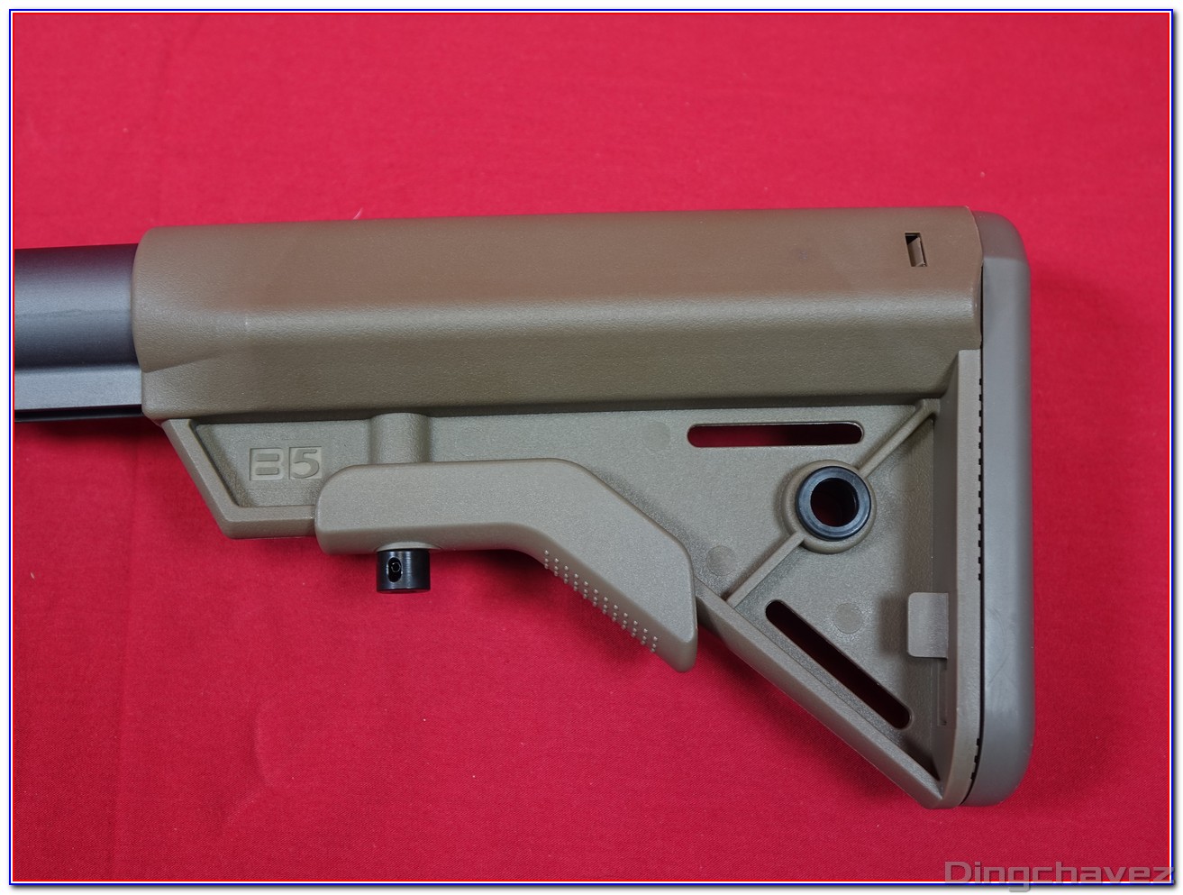 La crosse est une reproduction de crosse SOPMOD de chez B5 Systems.