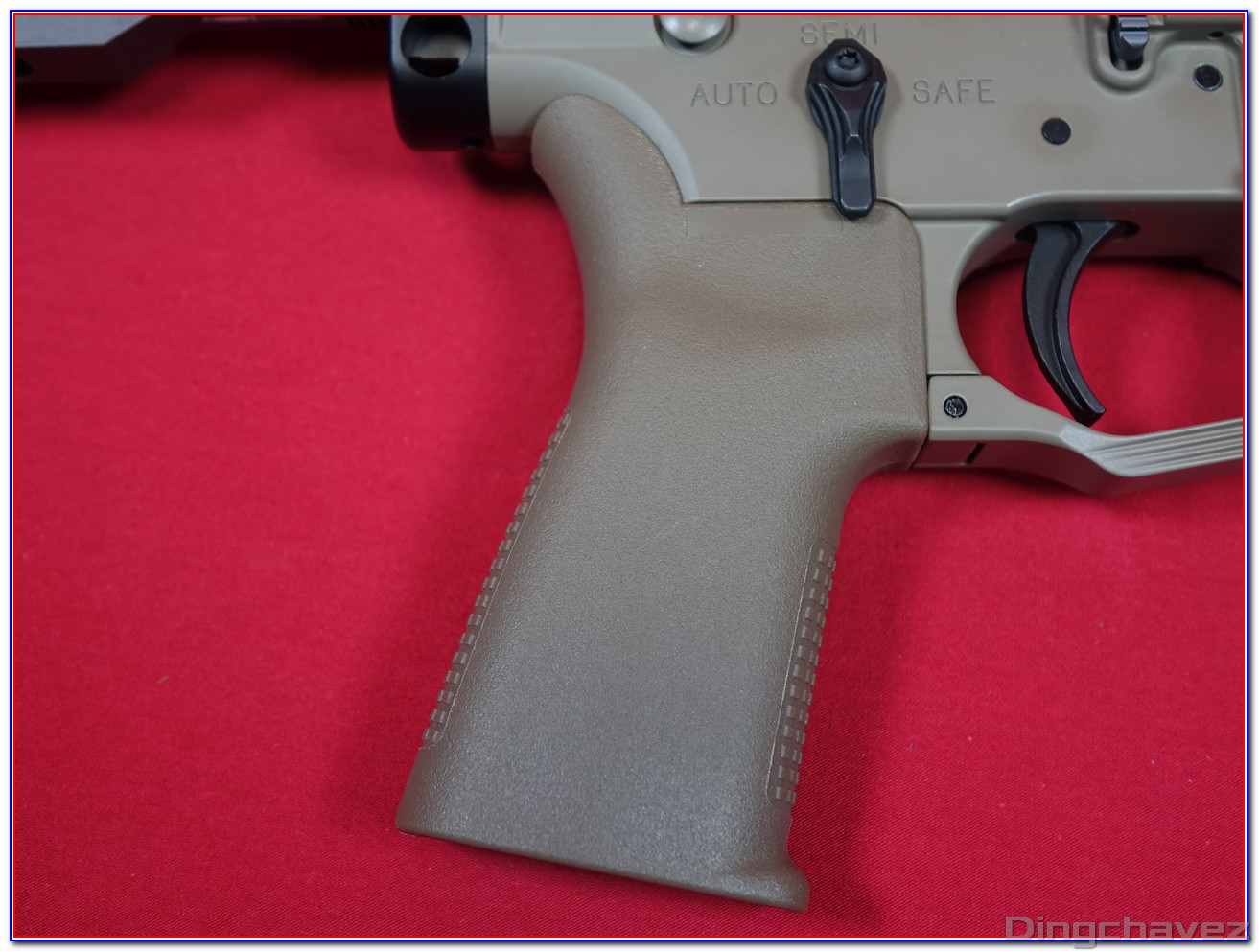 La poignée pistolet est fixée au lower par une grosse vis.