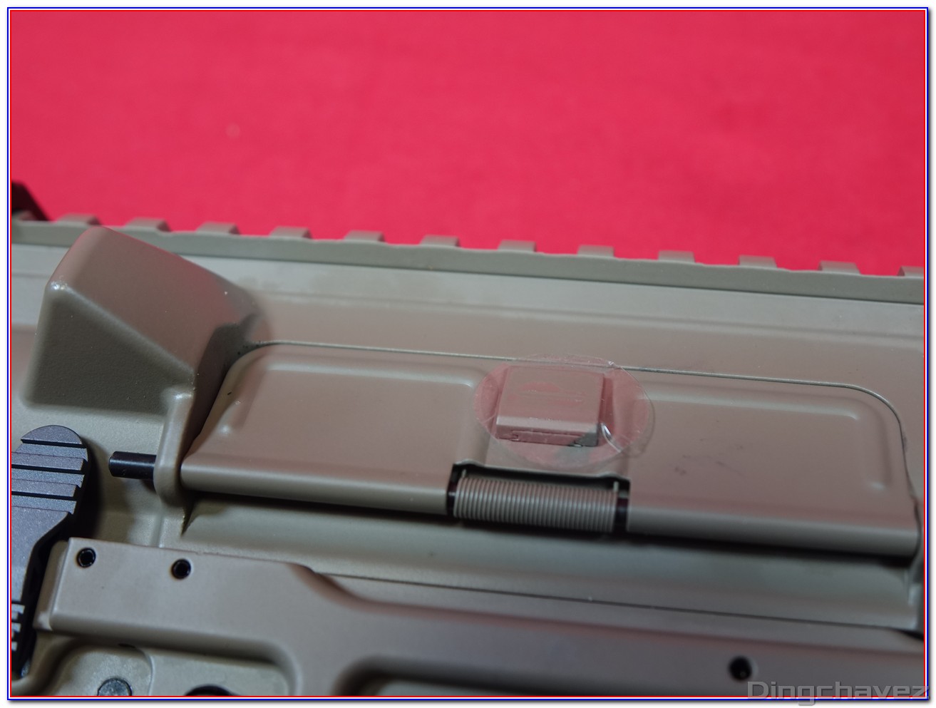 La trappe cache-poussière est en acier, elle s’ouvre lorsque l’on arme la réplique.