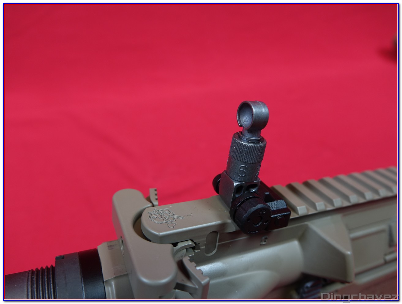 La réplique est livrée avec une paire d’organes de visée rabattables (flip-up) en métal.