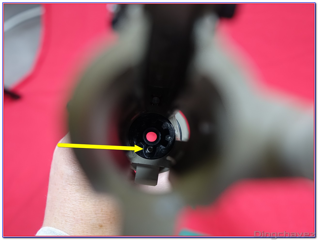 Sur ce marteau il y a une vis 6 pans que l’on peut dévisser pour modifier l’impact sur le valve knocker. Cela permet de percuter plus tôt pour injecter plus de gaz en fonction de vos envies ou de la température.