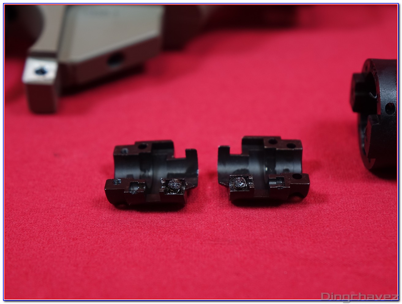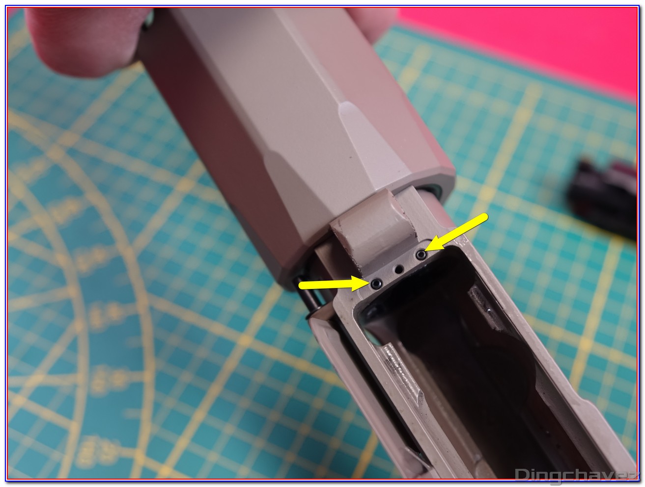 Deux mini vis maintiennent le bloc dans la réplique.