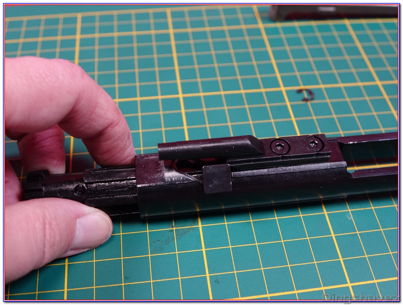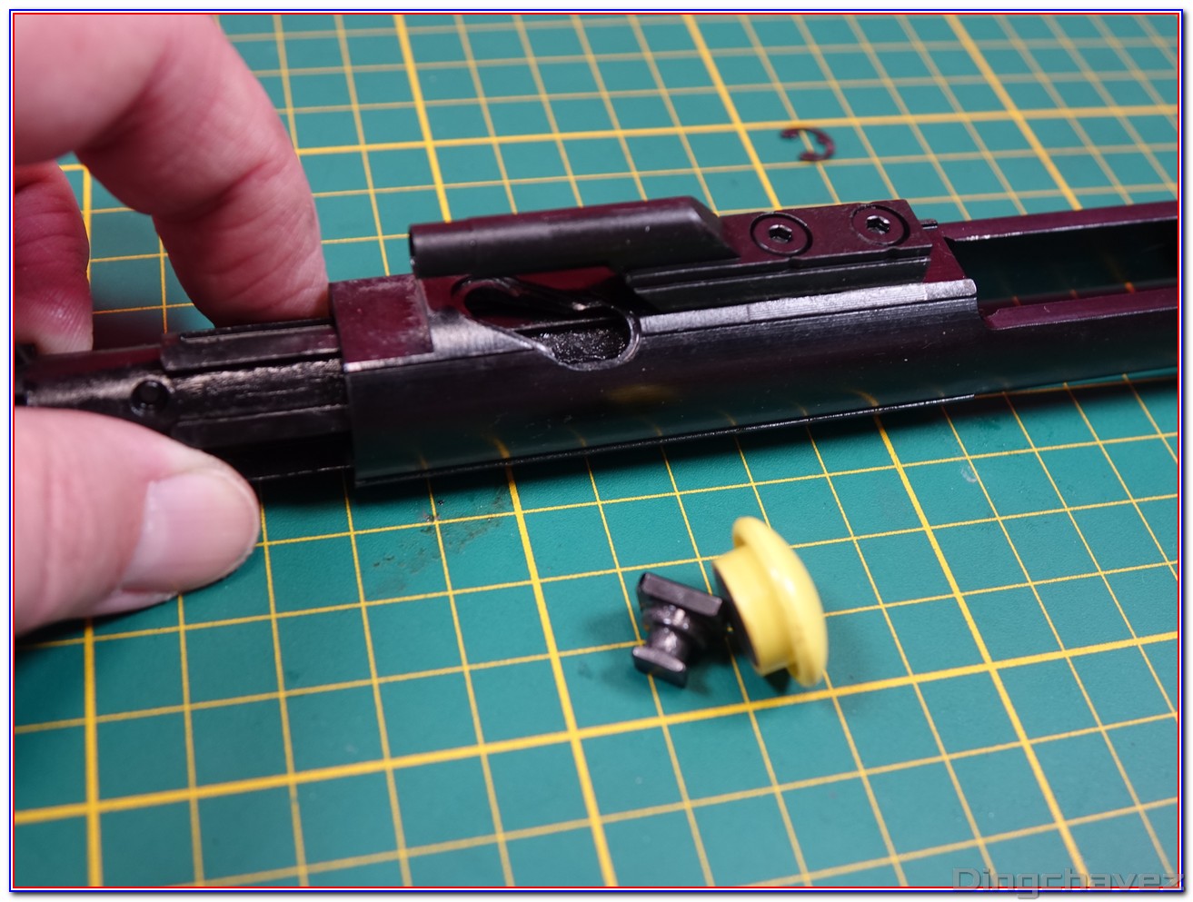 Puis comme sur un vrai AR-15, on ôte le cam pin (aucune idée du nom français ^^) qui fait office de guide supérieur.