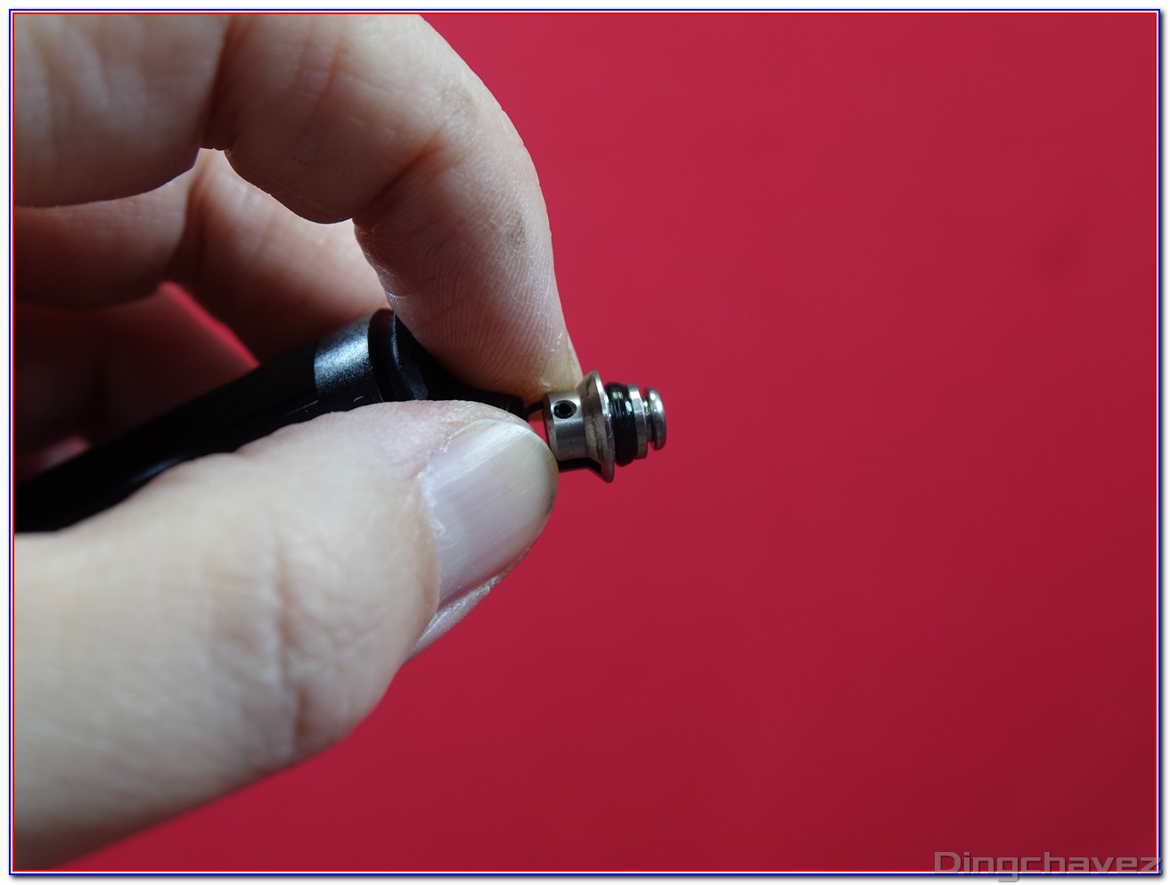 Deux goupilles maintiennent les différentes pièces du nozzle en place. Si vous souhaitez remplacer les ressort ou installer une valve ajustable, chassez ces goupilles.