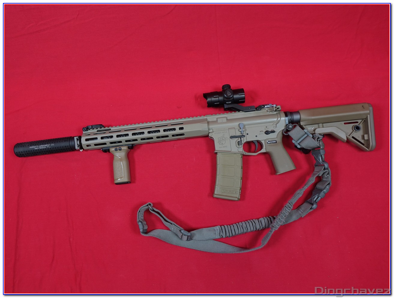 Il s’agit d’une réplique du KS-1 /L403A1 Knight’s Armament utilisé par l’armée britannique.