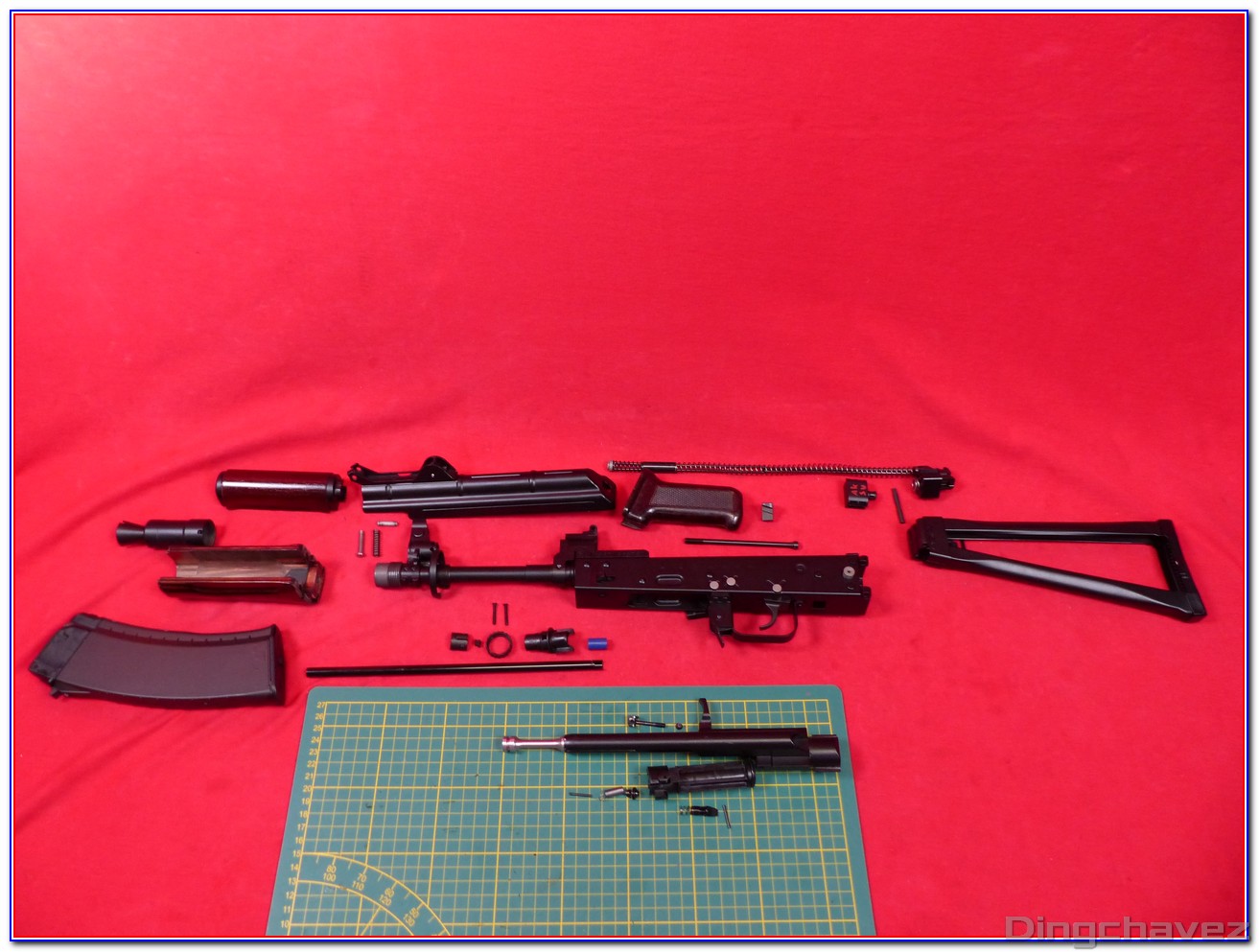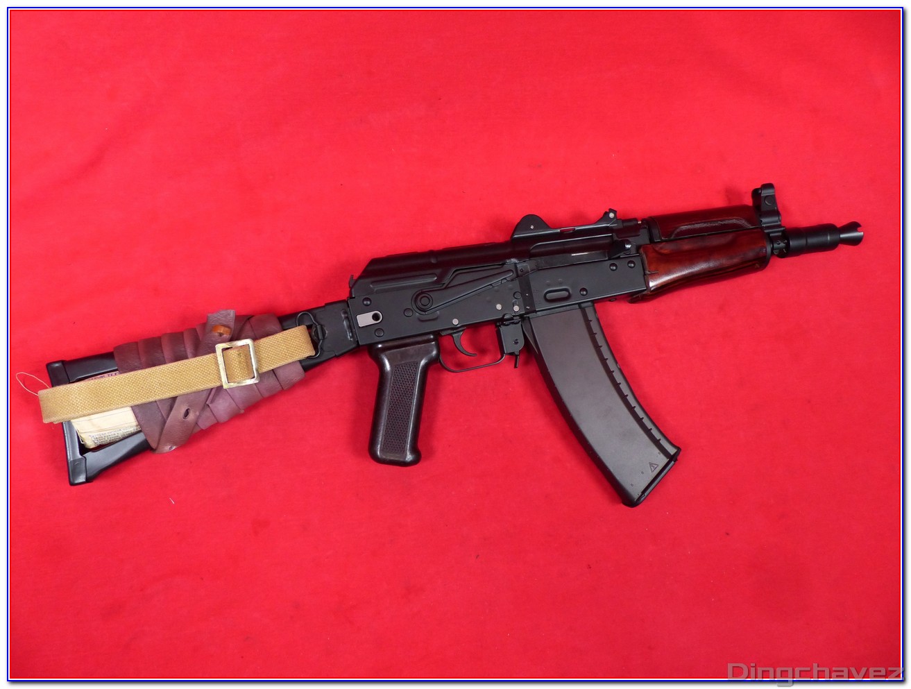 -La réplique de l’AKS74U. composée majoritairement d’acier, elle mesure entre 490 et 730 mm pour une masse de 2691 grammes.