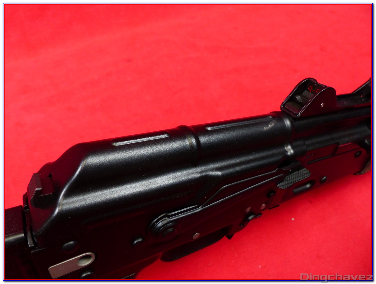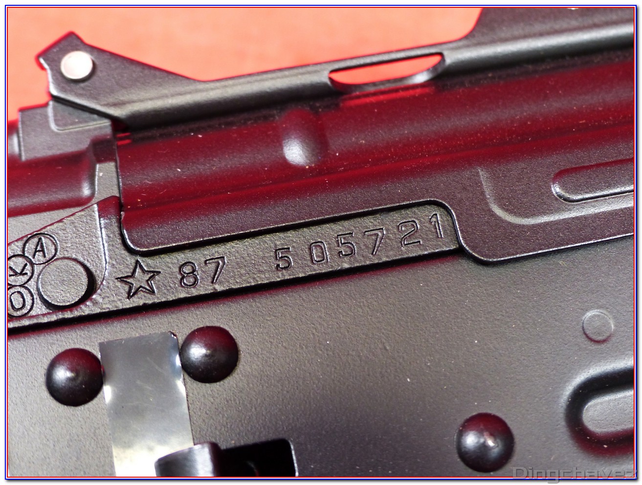 Le rendu de la peinture est très joli ! On remarque l’absence de rail latéral qui équipait les AKS74UN. Moi qui possède un PK-A adapté aux AKSU, je suis un peu déçu de l’absence de rail…
