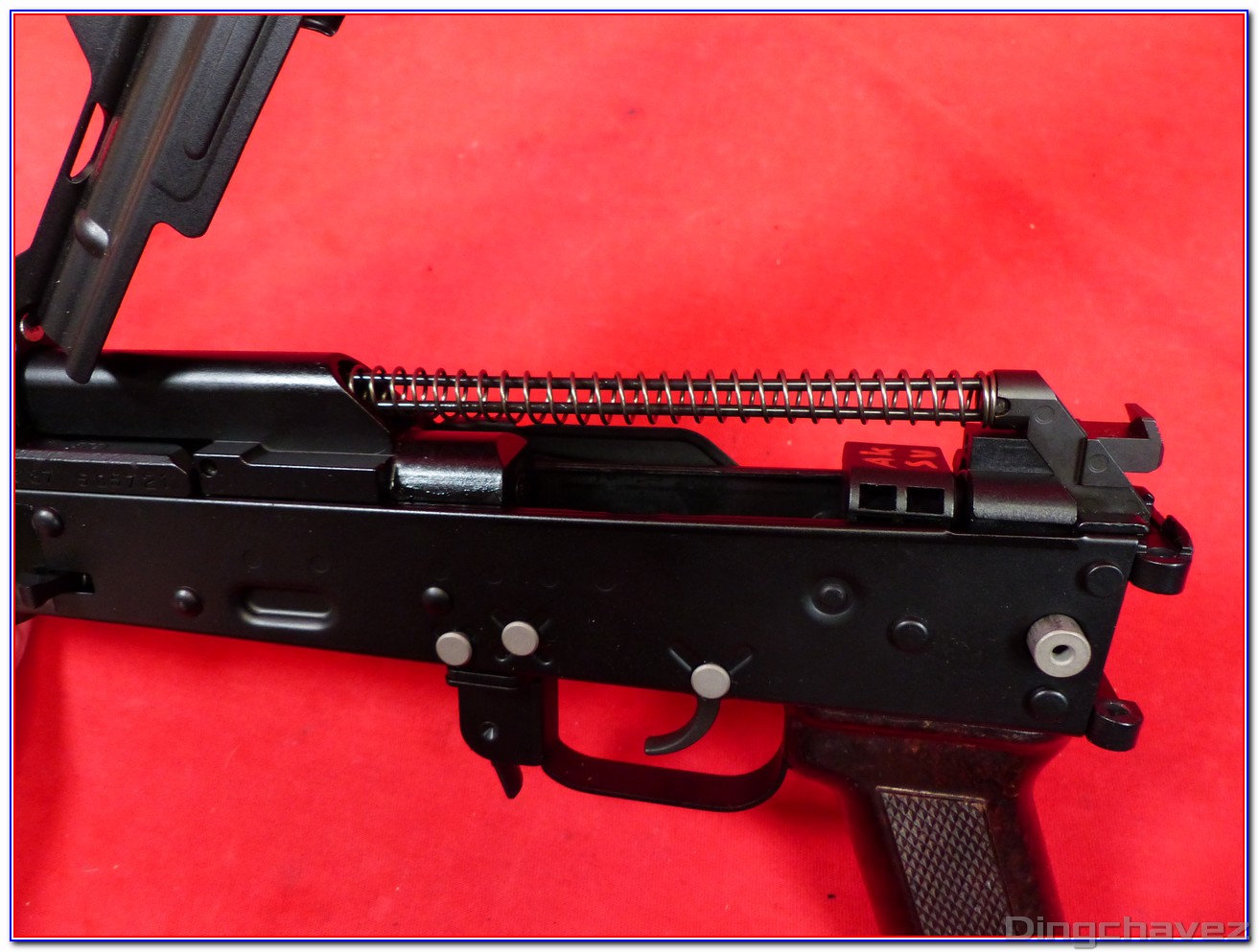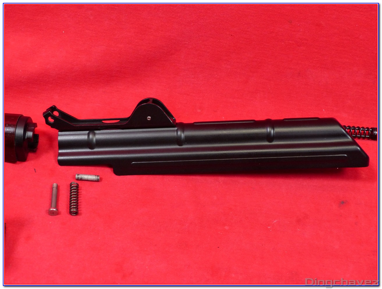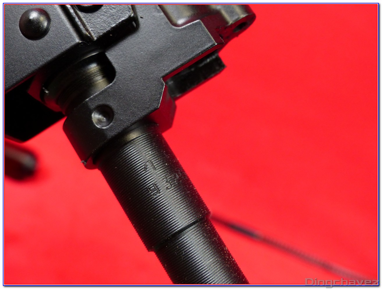 Ci-dessous on remarque l’amortisseur de course courte (short-stroke buffer). Il raccourci la course de l’ensemble mobile, procurant un cycle plus court et une cadence de tir légèrement plus élevée.