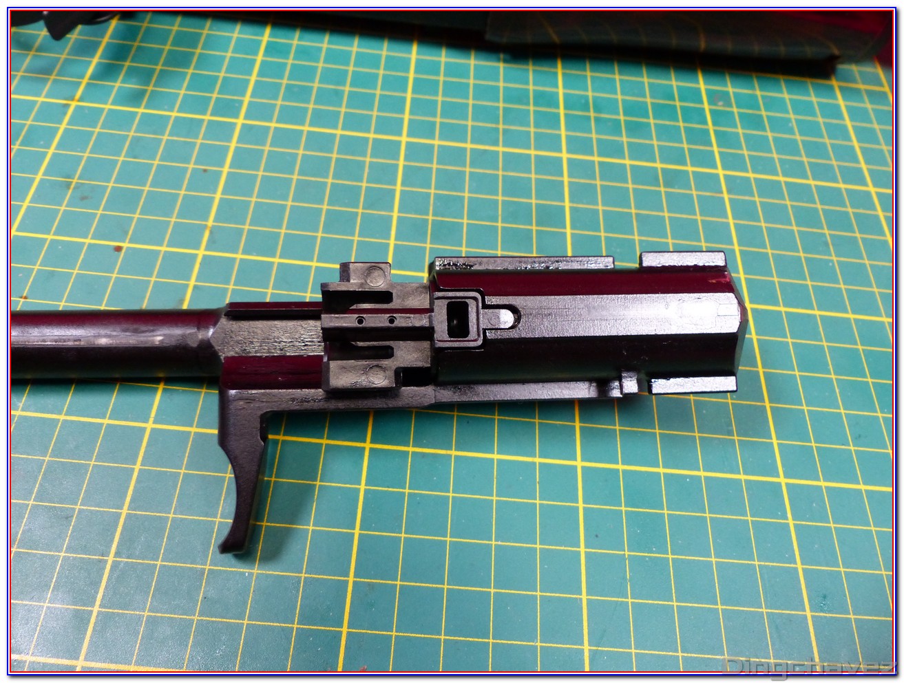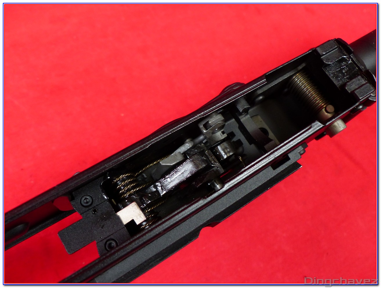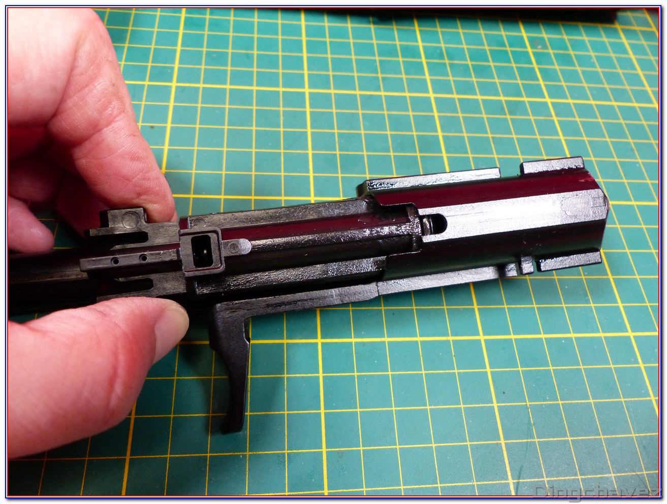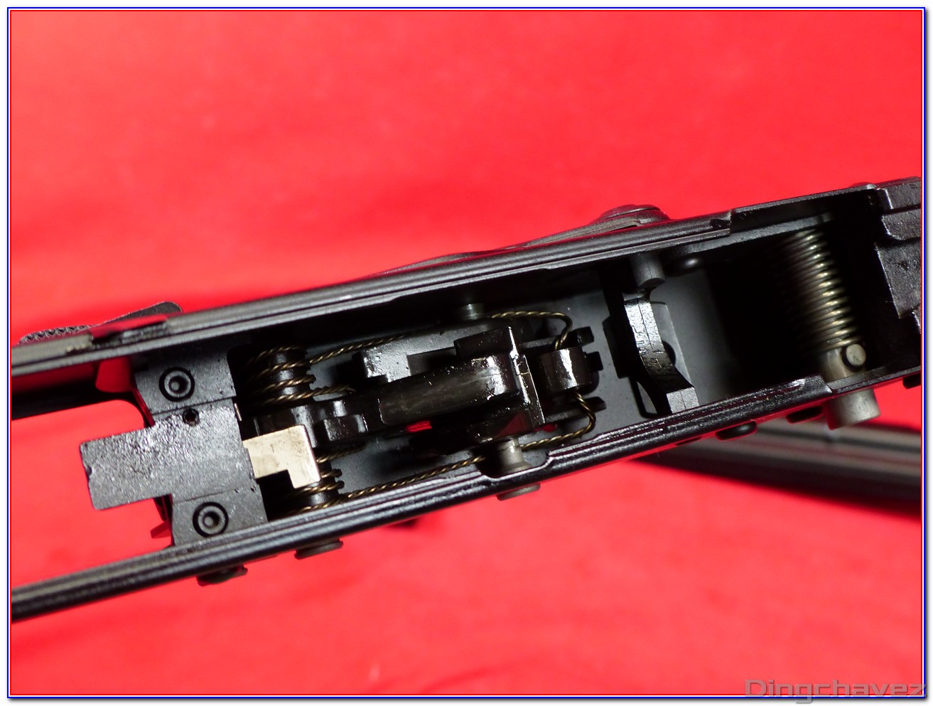 Je n’ai pas démonté la partie détente/gâchettes/sélecteur, on peut cependant constater que la reproduction du limiteur de rafale n’est pas présent.