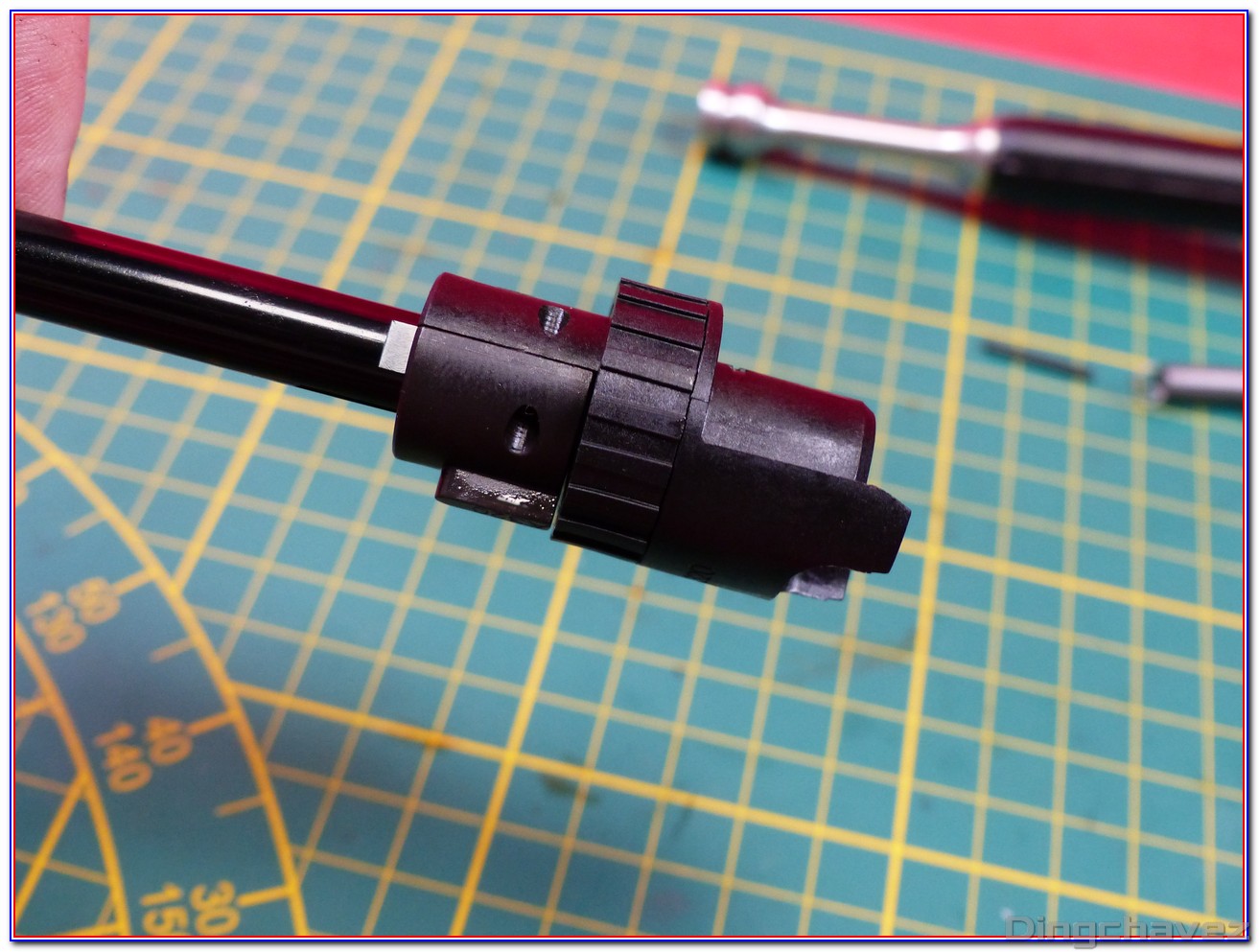 Afin de retirer cette dernière, VFC a prévu des encoches. Utilisez un tournevis fin pour retirer la pièce de maintien du canon.