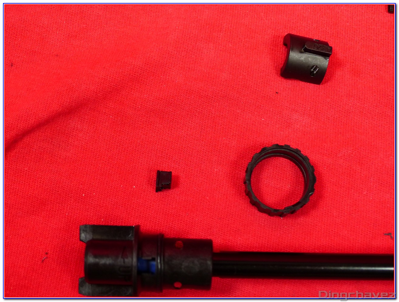 On pousse ensuite vers l’arrière pour faire sortir le canon et le joint de hop-up.