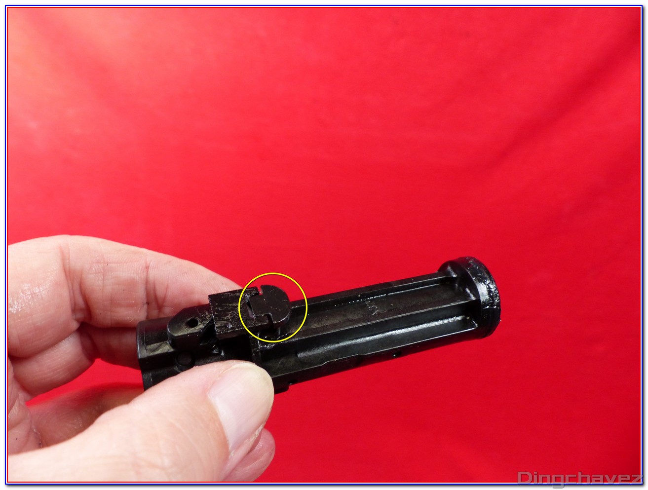 Ci dessous on peut voir la petite languette crénelée qui permet de verrouiller le système de tir à vide.