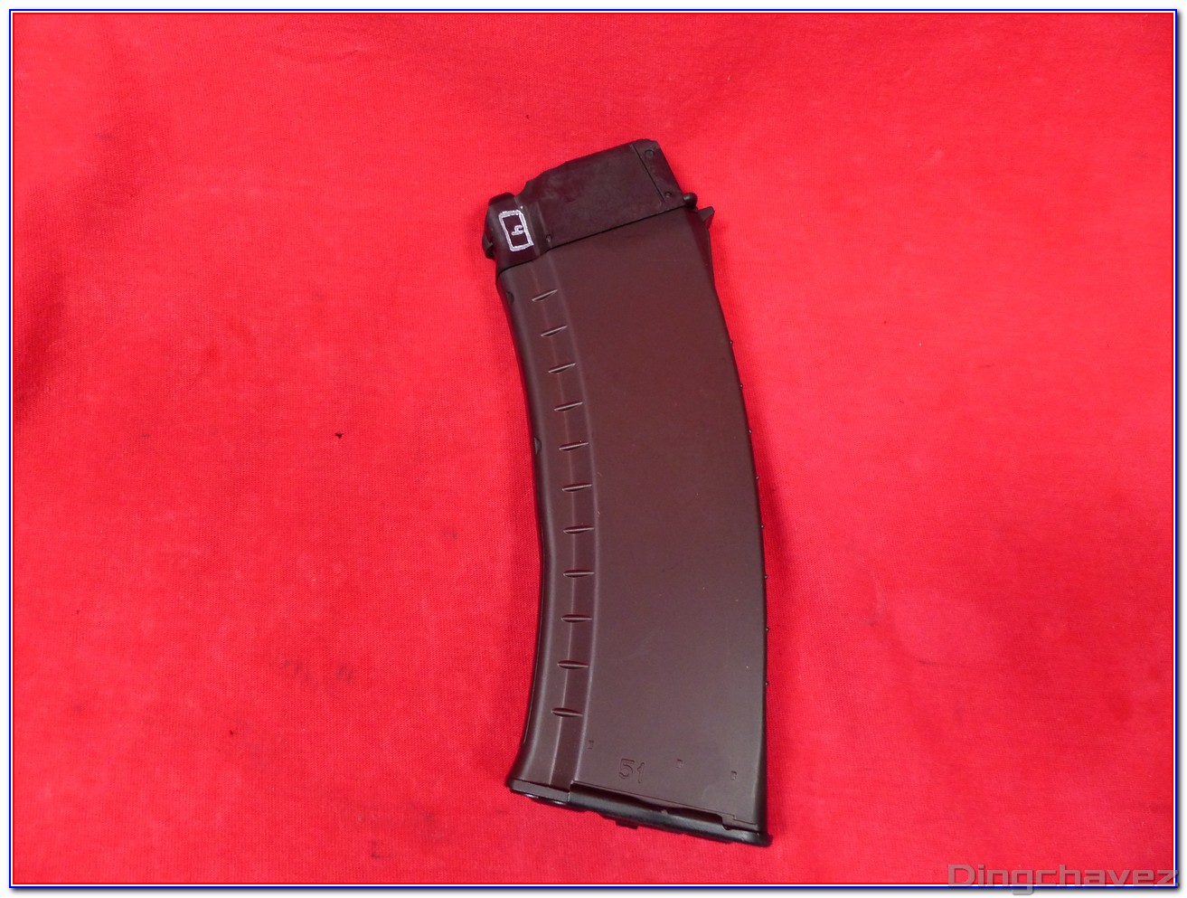 Voici une paire de photos avec un vrai chargeur d’AK74 (modèle « plum »).