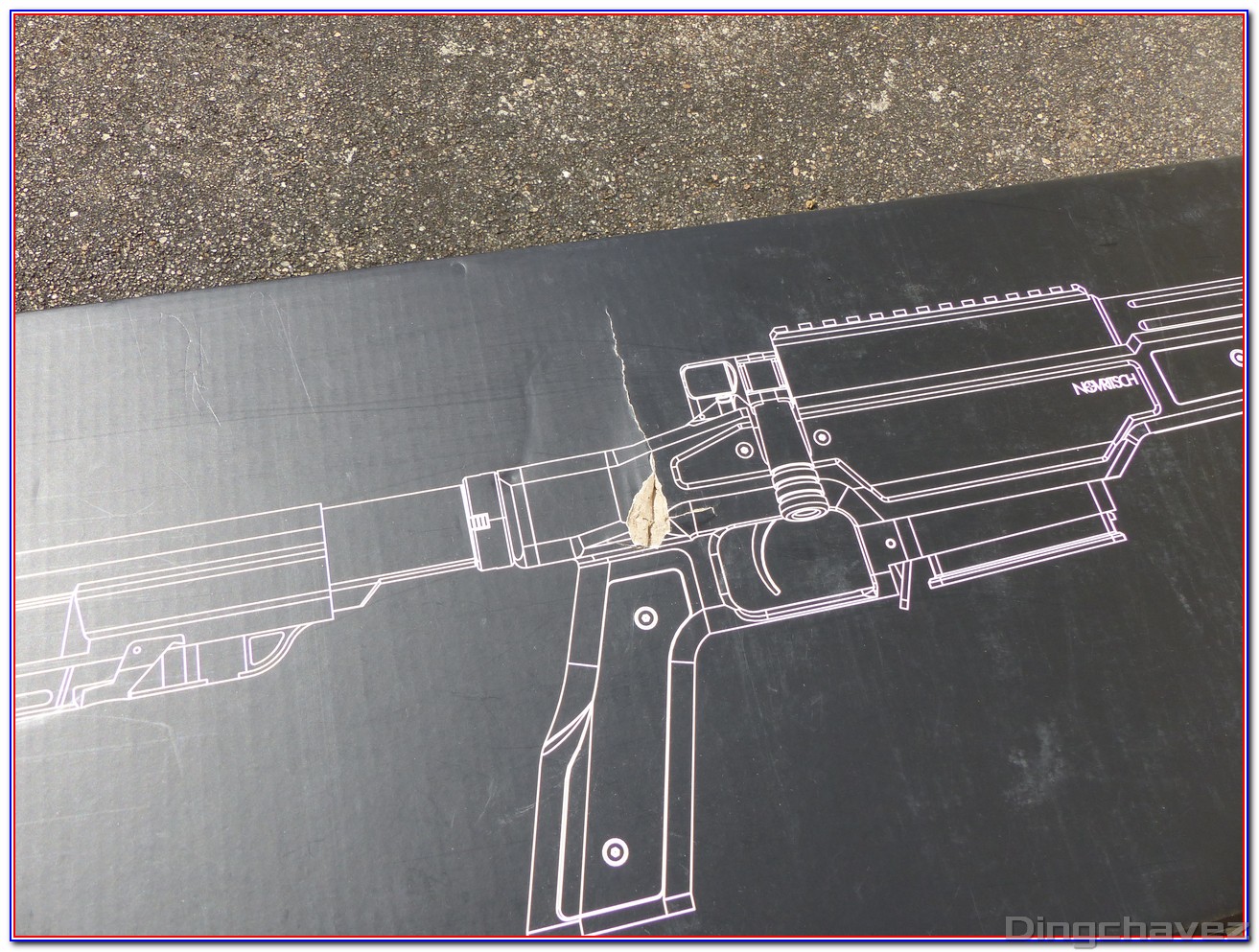 J’ai cassé (et recollé) un petit morceau de la crosse en sortant la réplique pour faire les photos (chat noir…)