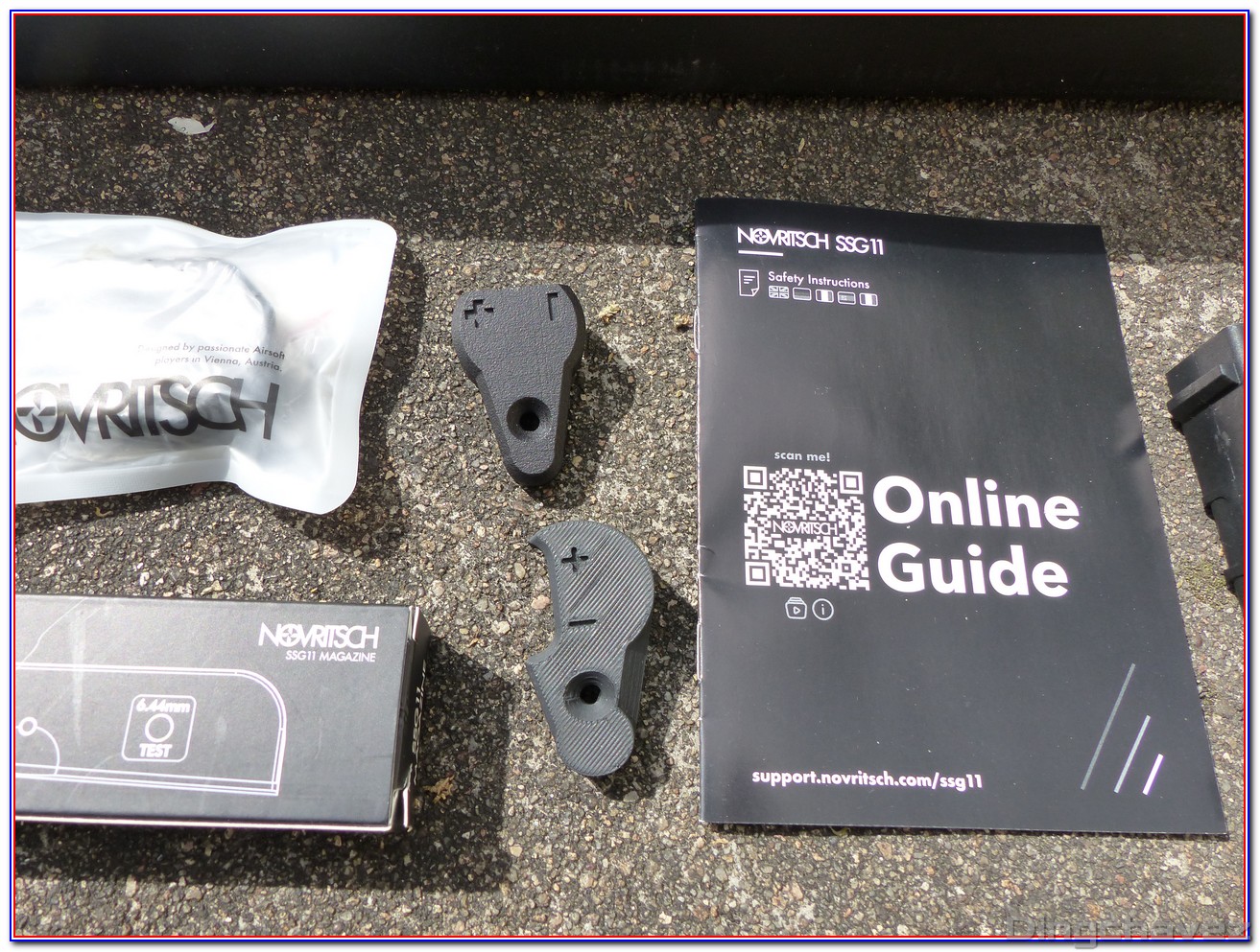Fourni avec un chargeur supplémentaire, un faux chargeur long, trois caches en impression 3D pour protéger la molette d’ajustement du hop-up.